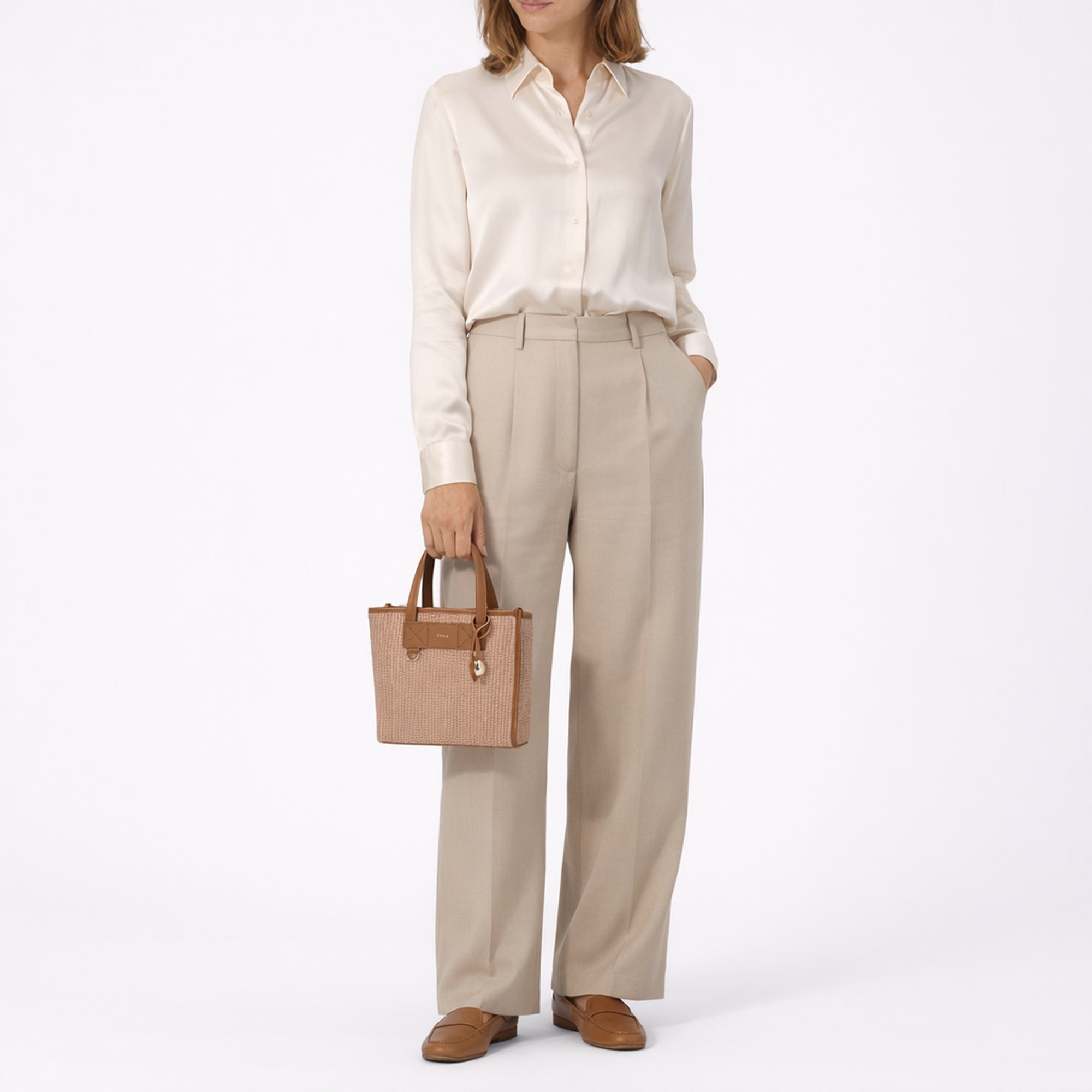 - Elegante Details wie das „Furla Archive“-Lederetikett und der halbkugelförmige Metallanhänger „Sfera“ – setzen modische Akzente und unterstreichen die Markenidentität