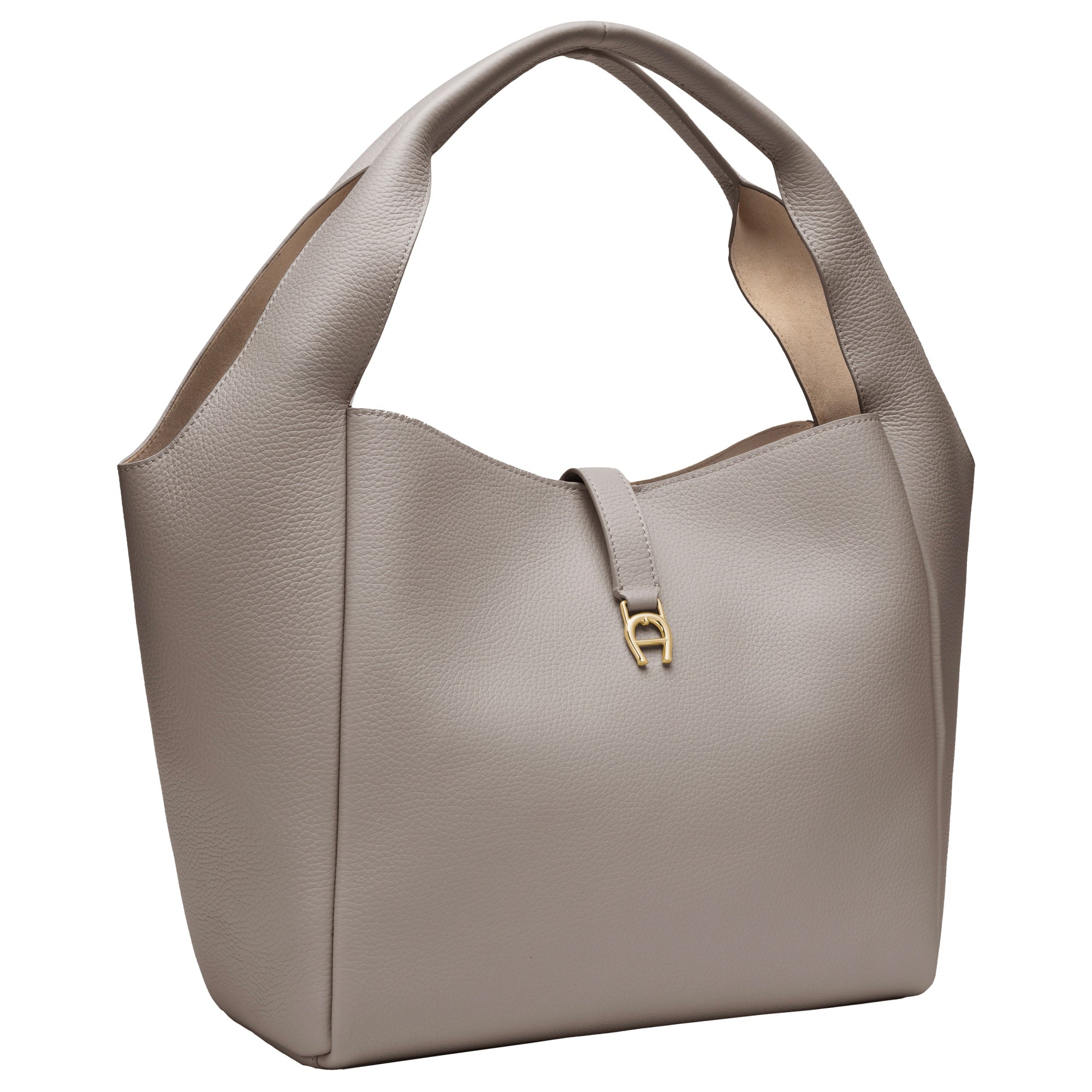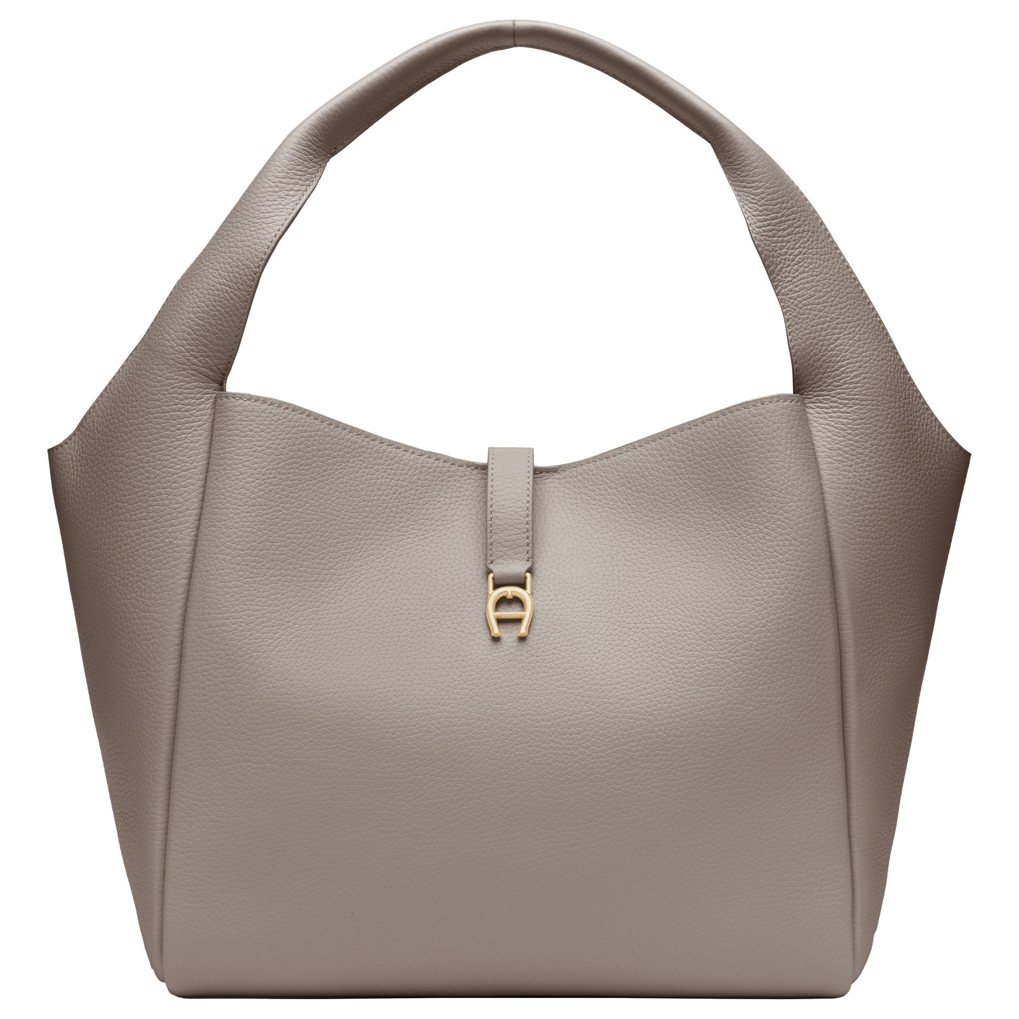 The Aigner Zaira M Handbag in elegant taupe is a stylish companion for fashion-conscious women who value timeless elegance and high-quality details.