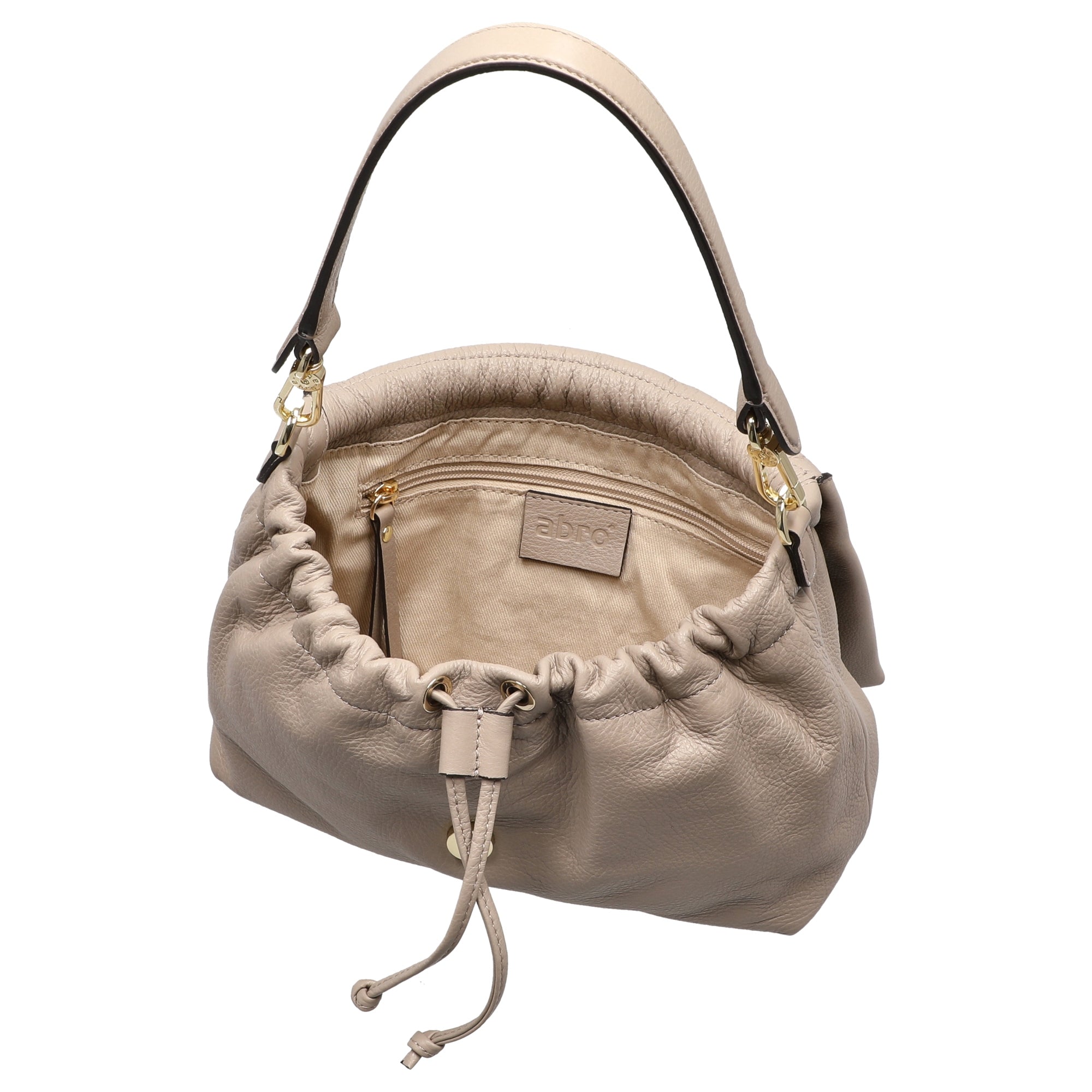 La borsa a tracolla abro Temi Medium in elegante nero è la compagna perfetta per donne attente allo stile, che apprezzano il design di alta qualità e la funzionalità. Il materiale pregiato è impreziosito da ferramenta in metallo spazzolato color oro, conferendo un aspetto lussuoso che si abbina facilmente a molti outfit.