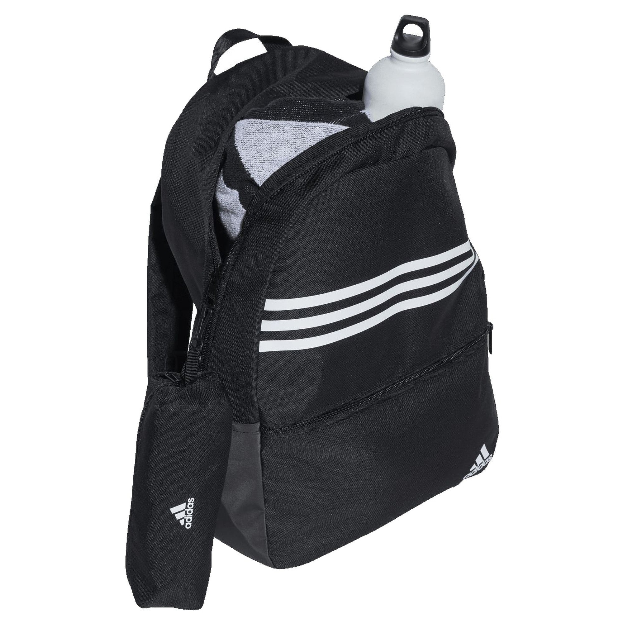 Scopri lo zaino Classic adidas nella elegante colorazione nero/bianco. Questo zaino unisce un design stiloso a una funzionalità pratica ed è il compagno ideale per scuola, tempo libero o sport.