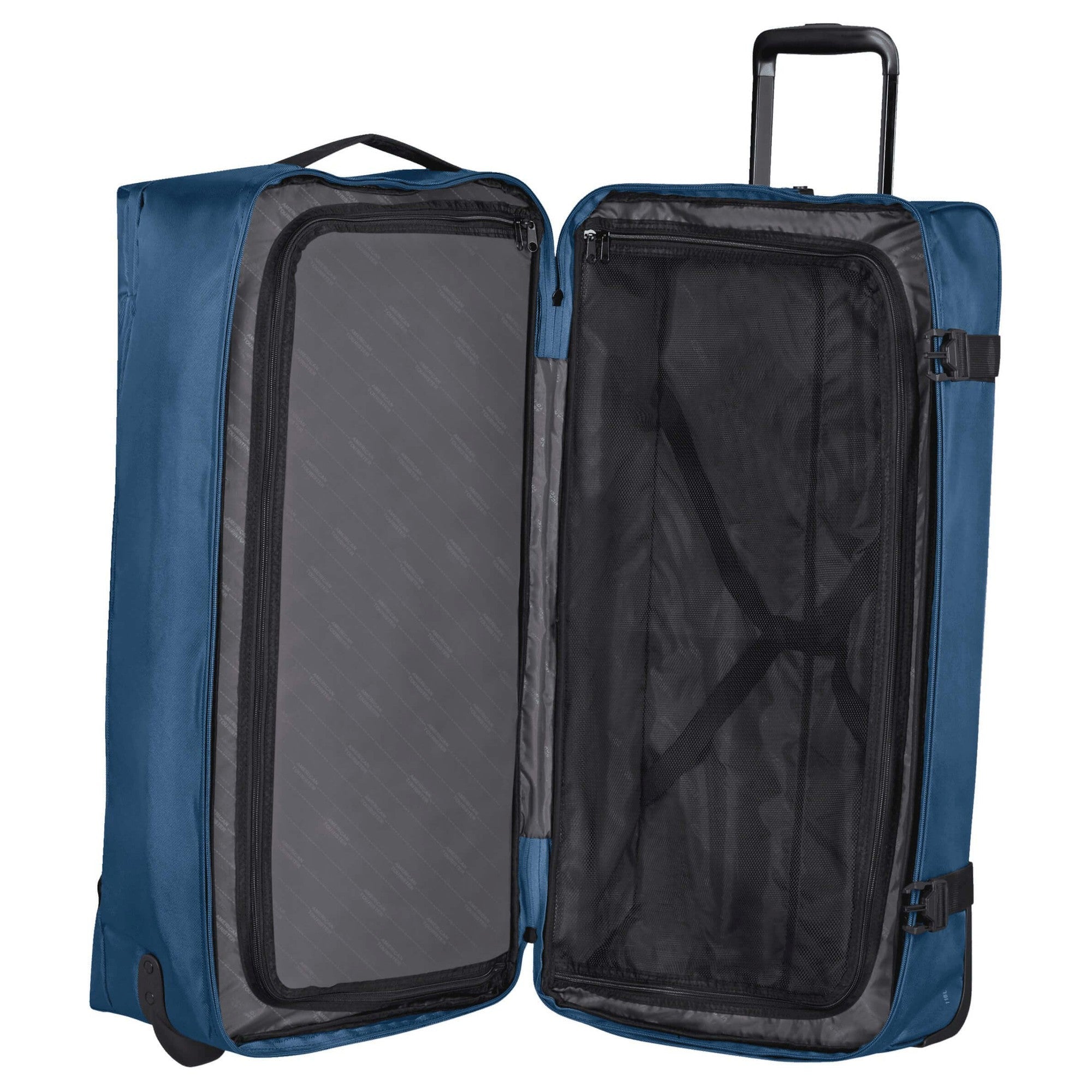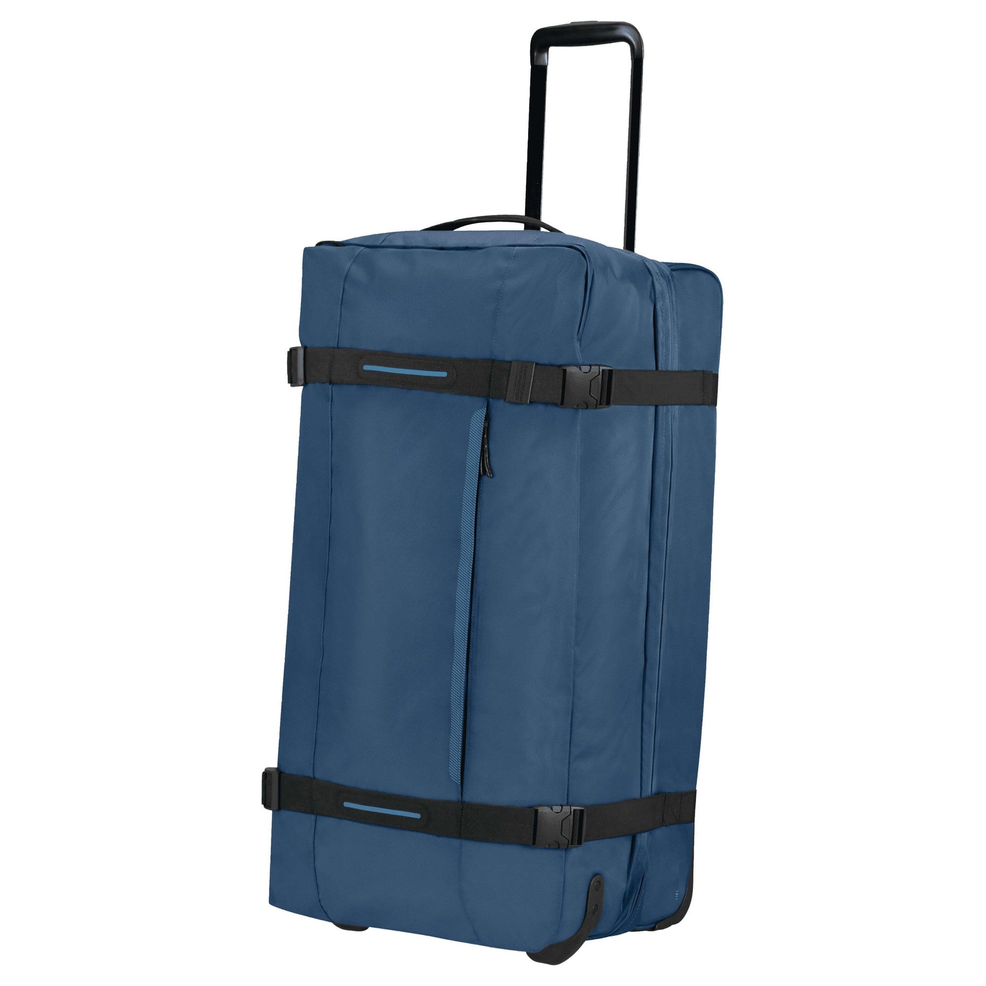 Per un comfort aggiuntivo sono integrati cinturini di compressione laterali che facilitano il confezionamento e mantengono la borsa compatta. Grazie alle due ruote scorrevoli e al telaio telescopico, lo spostamento è agevole, sia in aeroporto che per strada. Due maniglie permettono inoltre di portarla con flessibilità.