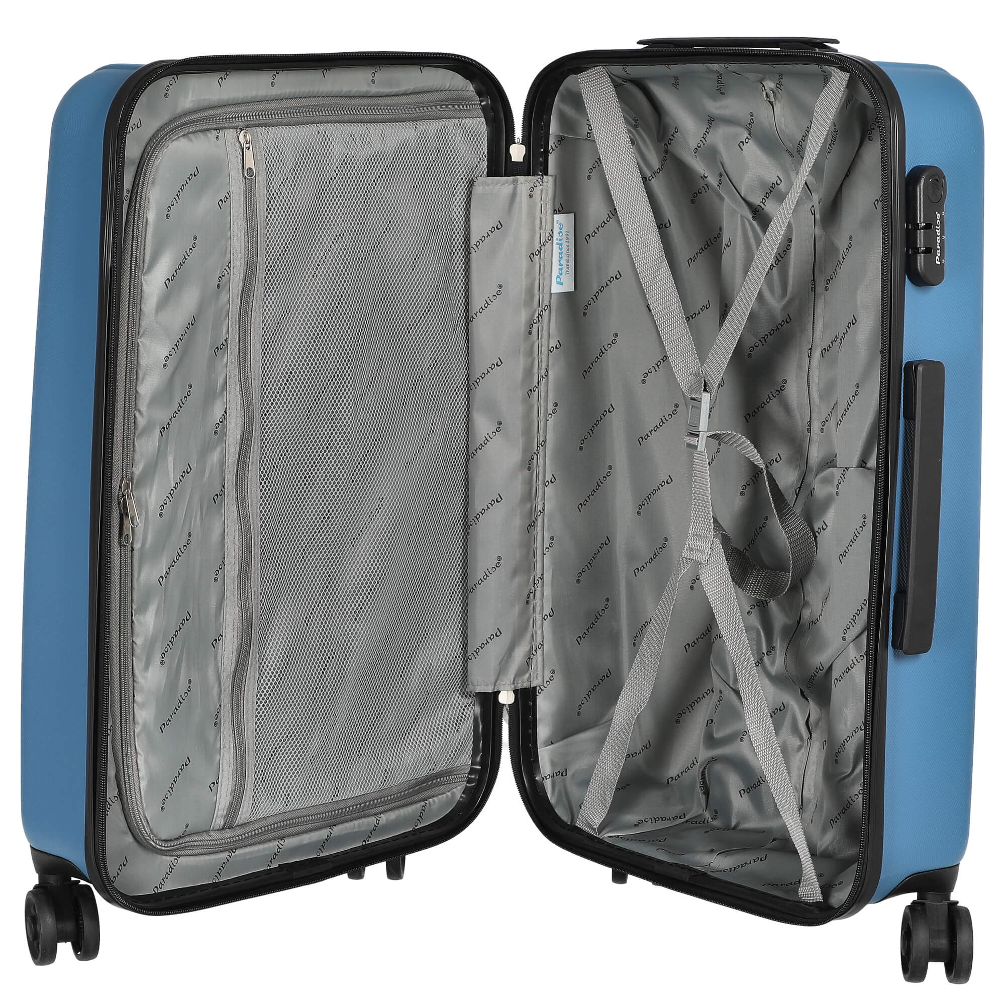 Con il trolley CHECK.IN Aurora in azzurro, non solo optate per un accessorio da viaggio pratico, ma anche per una dichiarazione di moda che accompagna i vostri viaggi con stile.