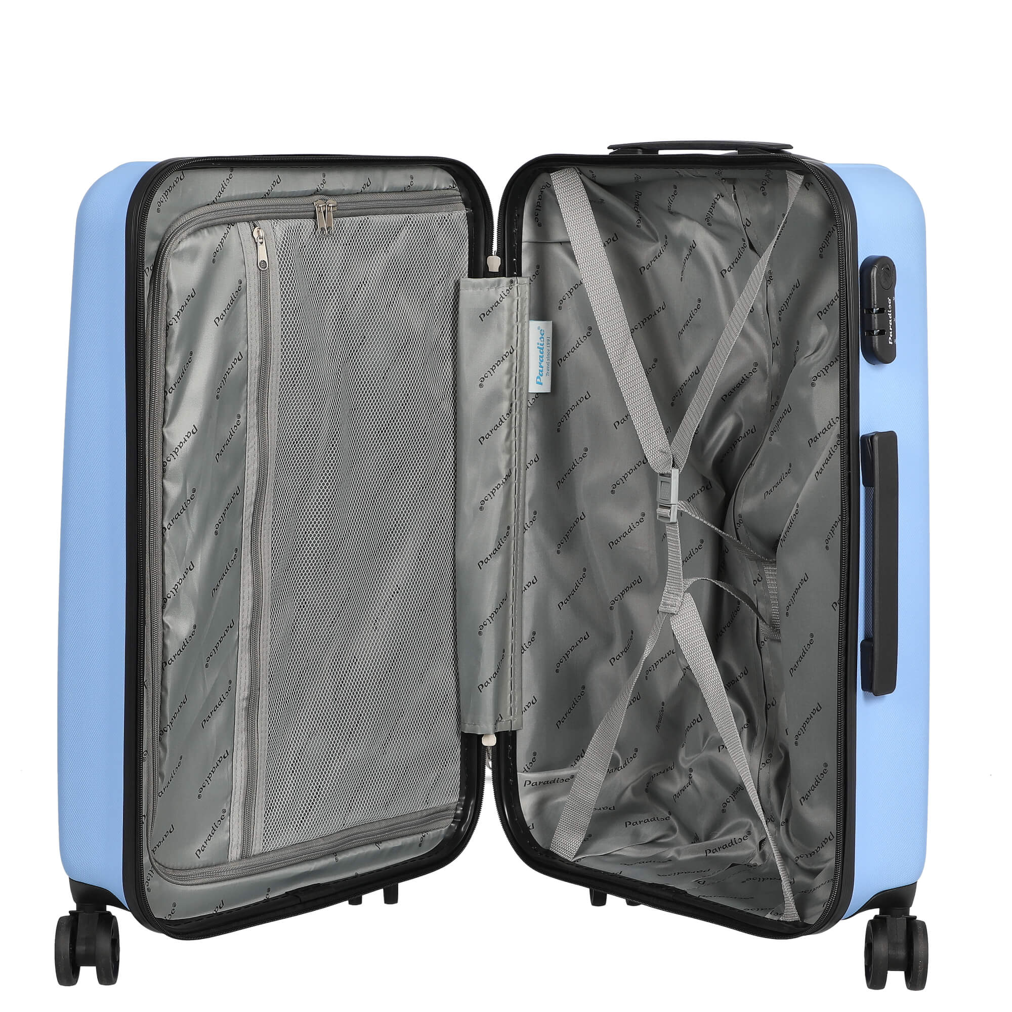 Scoprite il CHECK.IN Aurora - Trolley a 4 ruote in un allegro blu cielo, perfetto per le vostre prossime avventure. Questo trolley elegante combina funzionalità con un design moderno ed è il compagno ideale per un viaggio in città di una settimana.