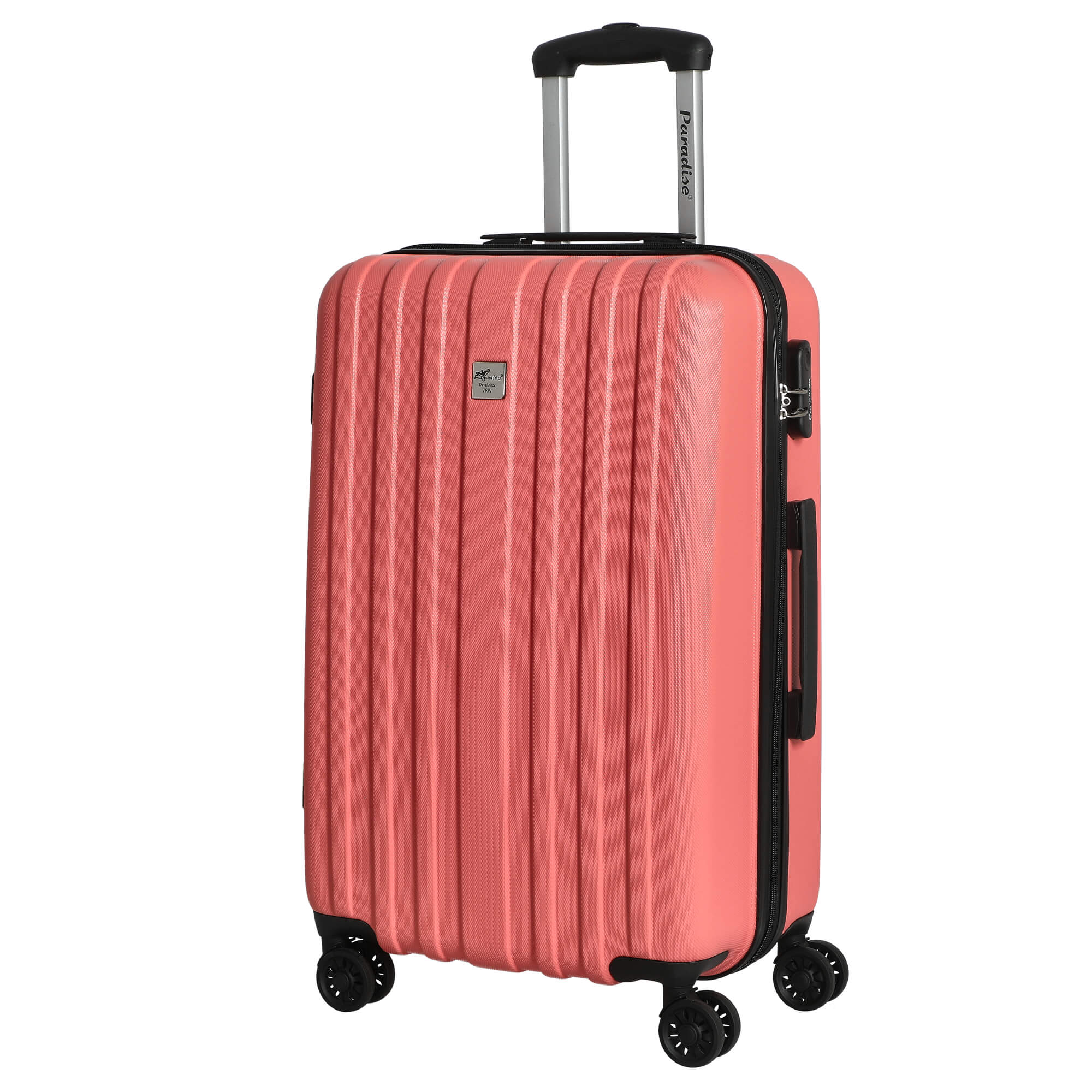 Il trolley CHECK.IN Aurora in corallo unisce stile e funzionalità ed è il compagno ideale per i vostri viaggi. Godetevi la leggerezza del viaggiare con una valigia che è sia pratica che alla moda.