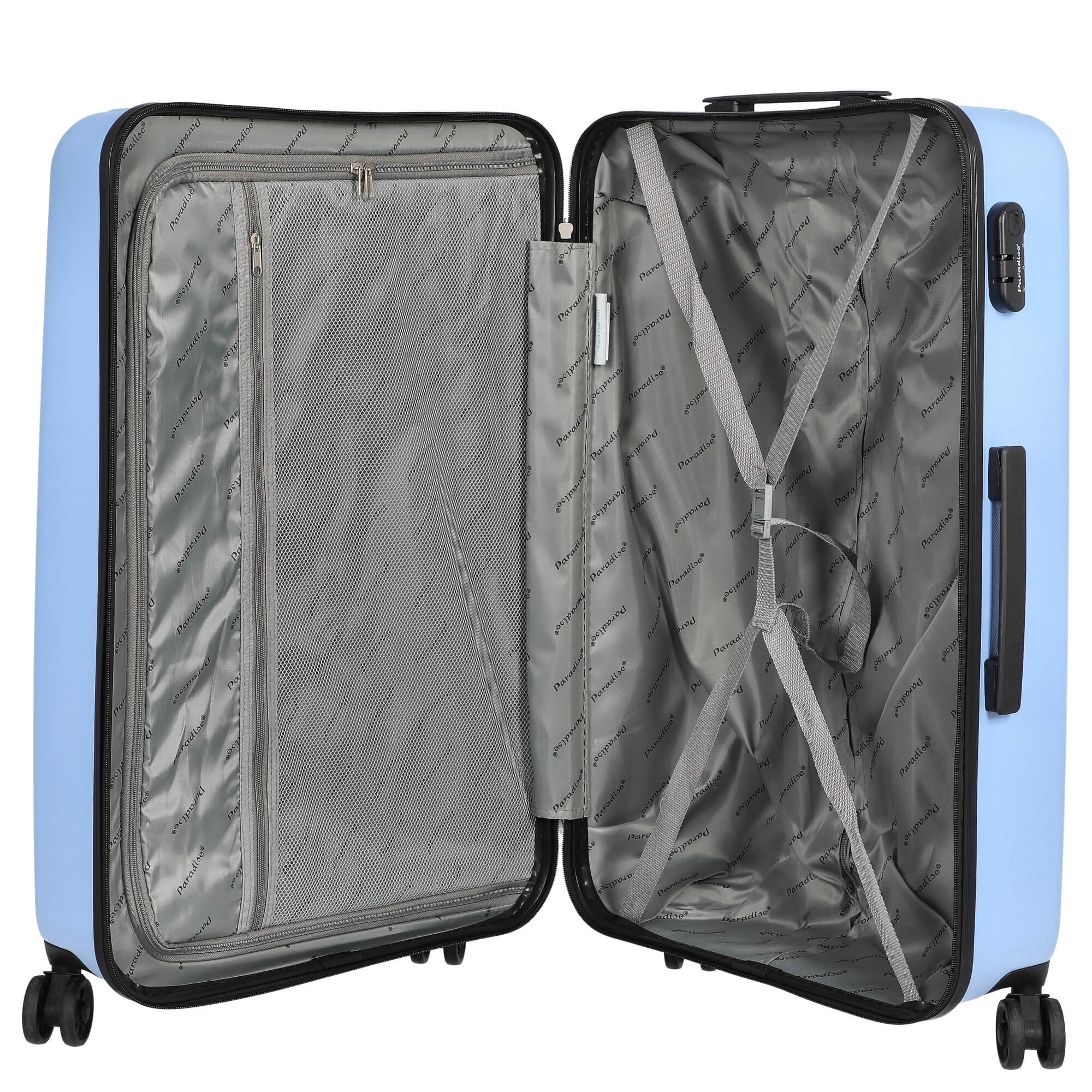 Scoprite il CHECK.IN Aurora - Trolley a 4 ruote in Azzurro cielo, che colpisce per il suo design leggero e colorato. Ideale per viaggi più lunghi, questo trolley con una capacità di 93 litri offre spazio sufficiente per tutti i vostri accessori da viaggio.