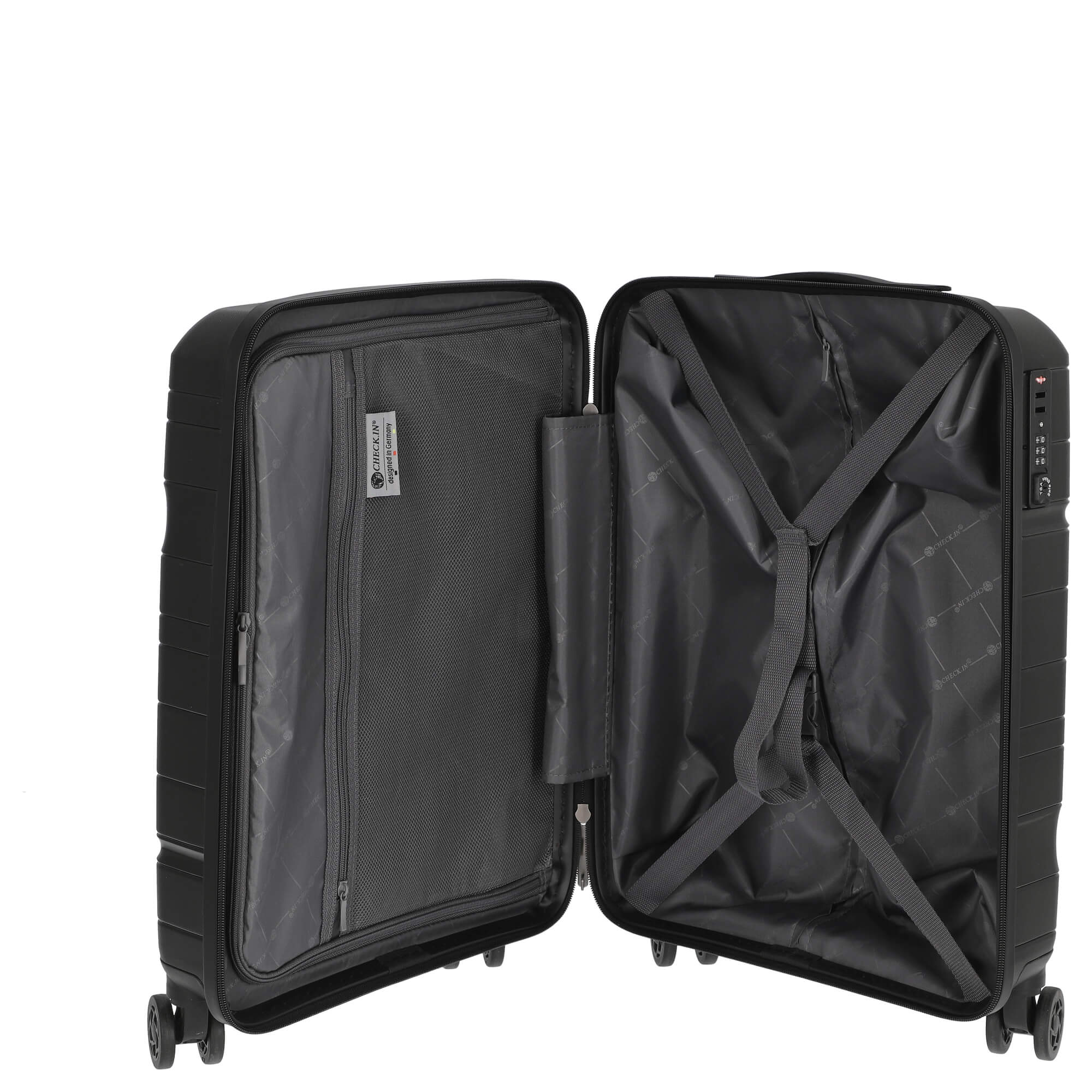 Scoprite il CHECK.IN Memphis - trolley da cabina a 4 ruote nel elegante colore nero, che si distingue non solo per il suo design esclusivo, ma anche per la sua funzionalità ben studiata. Con un peso di soli 2,70 chilogrammi, questo trolley è il compagno ideale per i vostri viaggi.