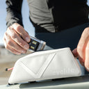 La Cyclite Top Tube Bag Nano in un discreto grigio chiaro è una borsa compatta per biciclette pensata per gli appassionati di bikepacking che danno importanza alla funzionalità e al peso ridotto.