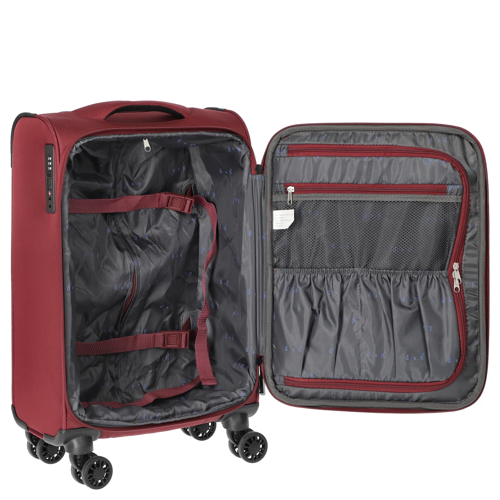 Scoprite il D&N Travel Line 9504 - un elegante trolley da cabina a 4 ruote nel raffinato colore petrolio. Questa valigia unisce funzionalità e design moderno, ideale per chi cerca un bagaglio leggero e resistente. Con un peso di soli 2,30 chilogrammi, questo trolley è perfetto per i vostri viaggi e soddisfa le normative sul bagaglio a mano della maggior parte delle compagnie aeree.