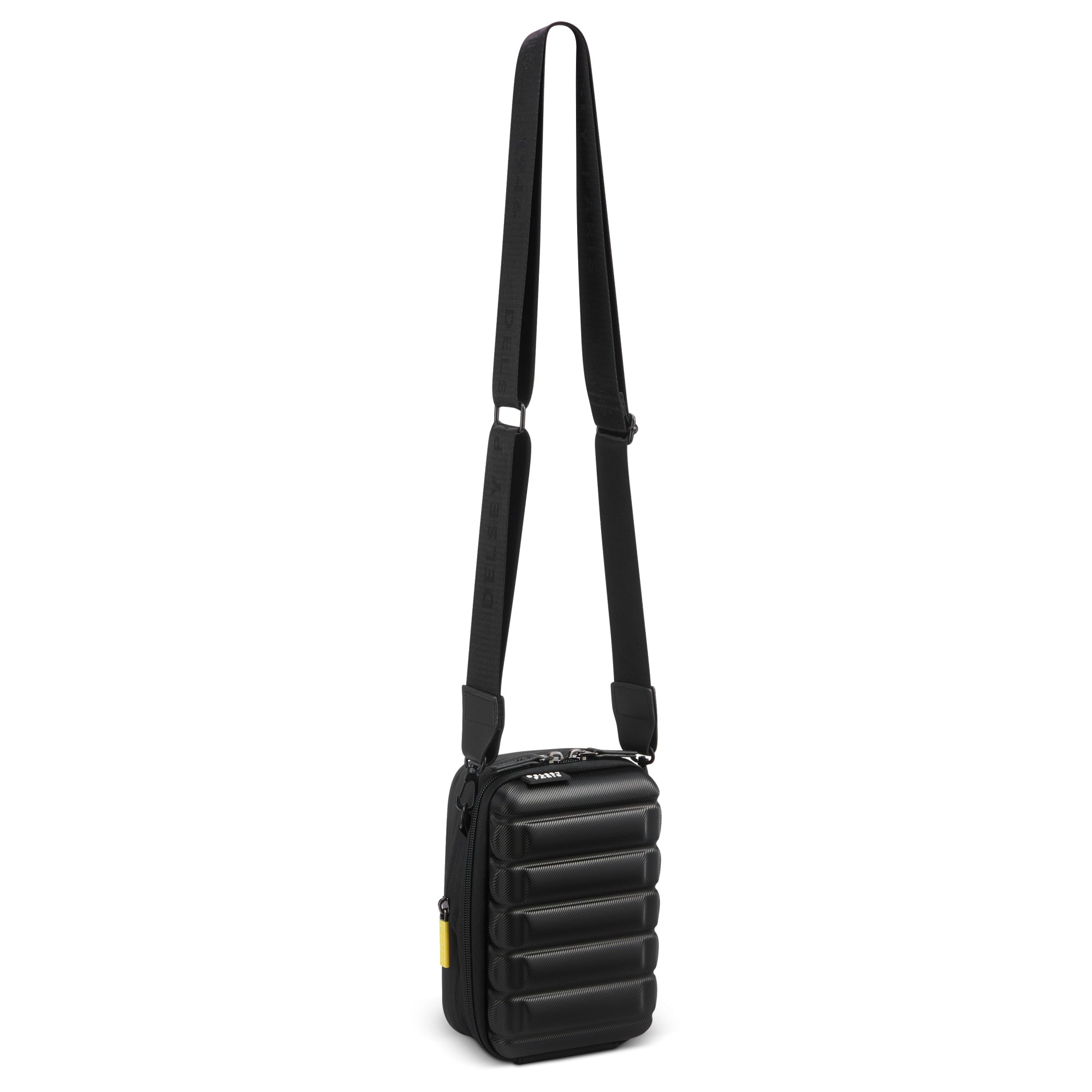 La borsa a tracolla Delsey Paris Shadow 5.0 in elegante nero unisce un design urbano a una funzionalità pratica. La sua tracolla regolabile e alla moda consente un trasporto comodo, sia in modo classico che a tracolla incrociata.