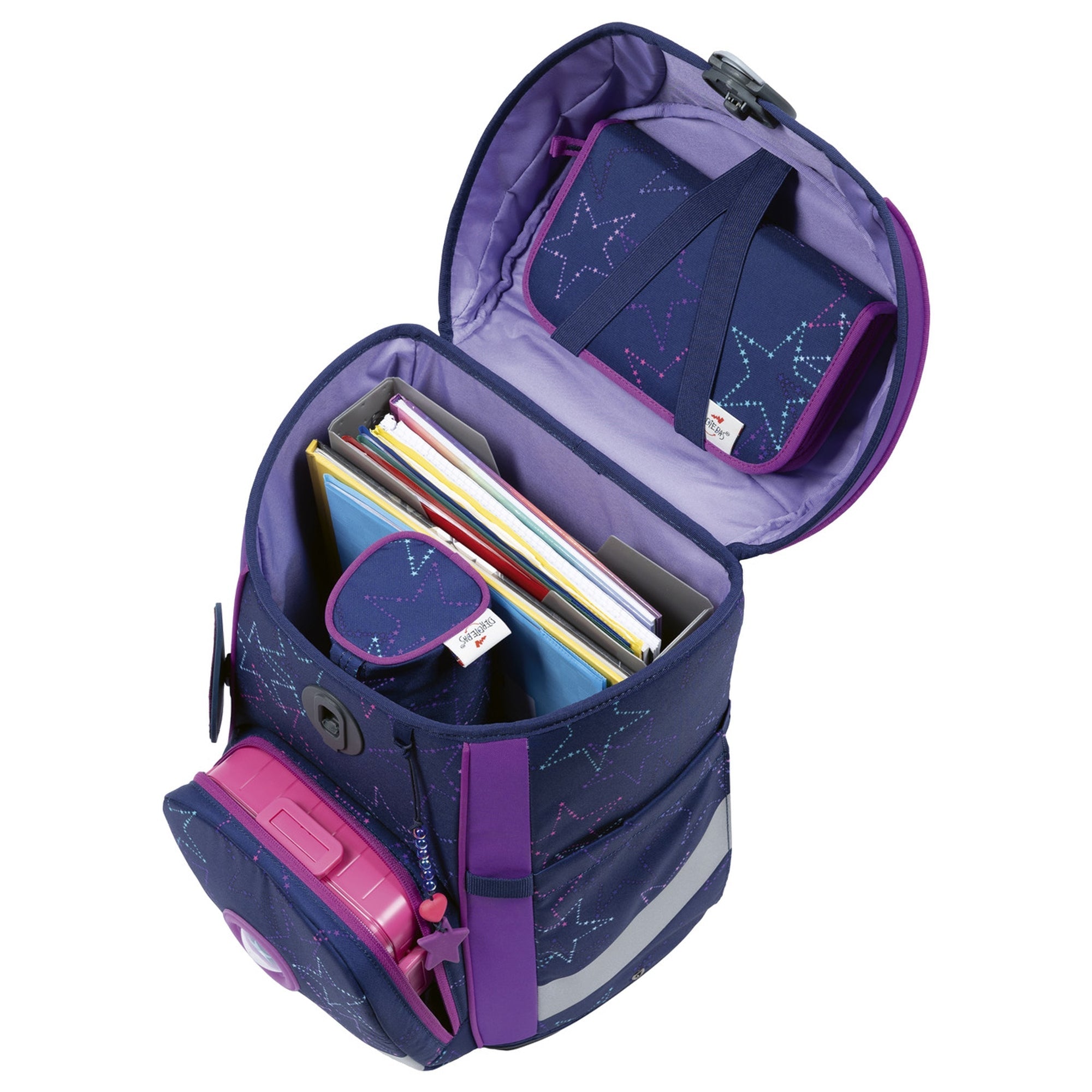 Scopri lo zaino scolastico ErgoFlex Easy nel trendy colore Crazy, che si distingue non solo per il suo design moderno, ma anche per il suo alto comfort di trasporto e le funzioni pratiche. Lo zaino unisce una silhouette snella con ampio spazio di stivaggio per libri, quaderni e altro. Un particolare punto forte è il anello LED extra luminoso, che garantisce visibilità al crepuscolo e rende lo zaino inconfondibile.