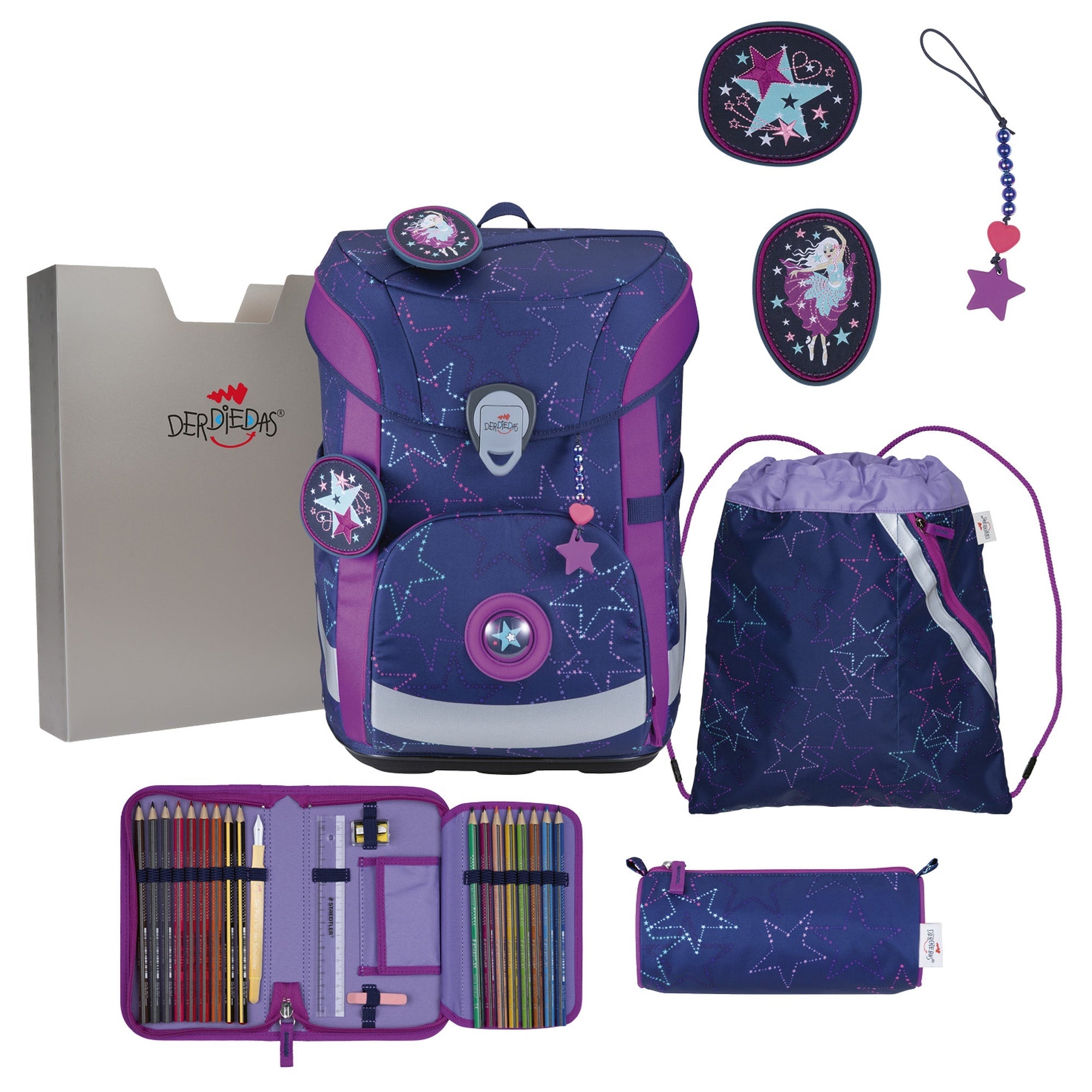 DerDieDas ErgoFlex Easy Exclusive LED - Set Zaino Scolastico 5 pezzi 950g (Crazy)
