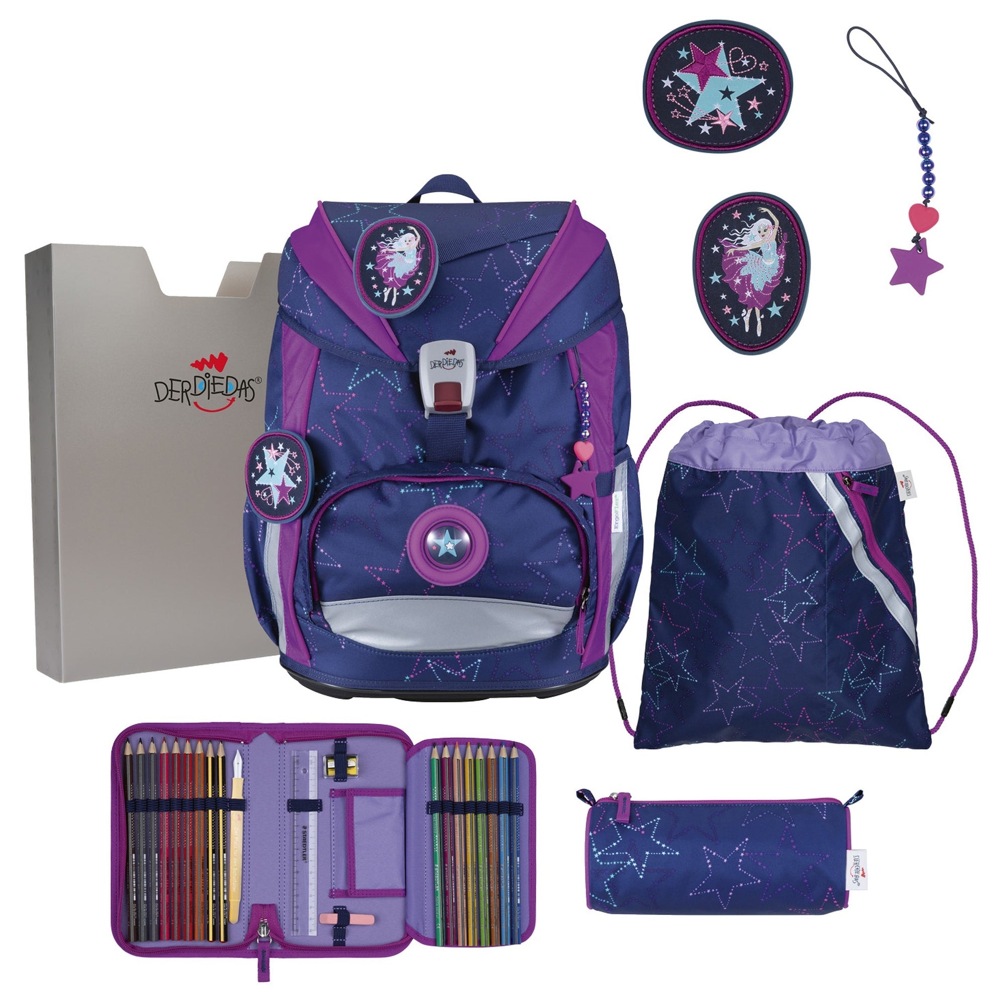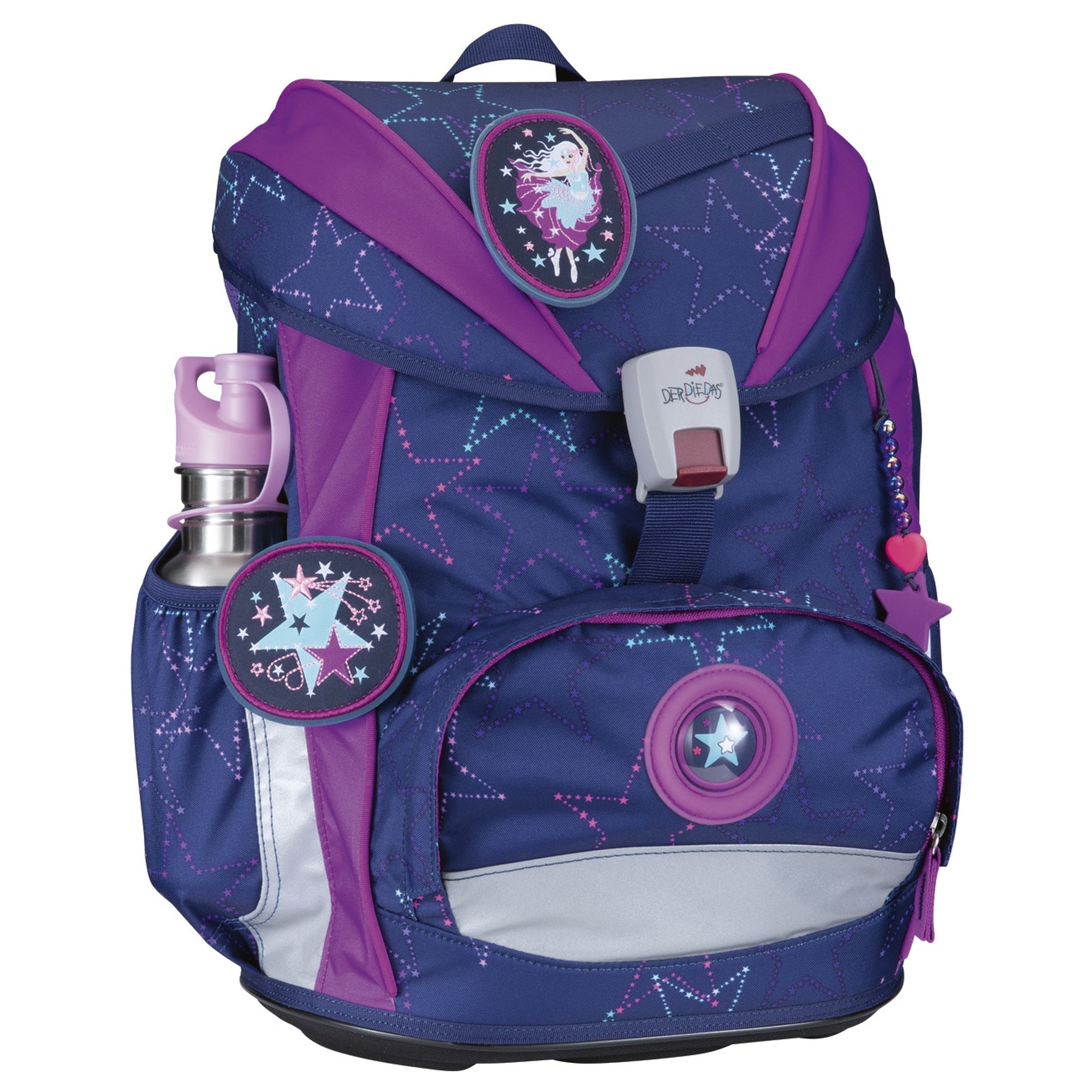 Scoprite il DerDieDas ErgoFlex Exklusiv LED - Set di Zaino Scolastico nel trendy colore Crazy. Questo zaino scolastico unisce un design moderno a una funzionalità ben studiata, ideale per bambini scolari attivi. L'anello LED extra luminoso attorno alla finestra garantisce la massima visibilità e sicurezza al buio, mentre le ampie superfici riflettenti offrono ulteriore protezione durante il tragitto verso scuola.