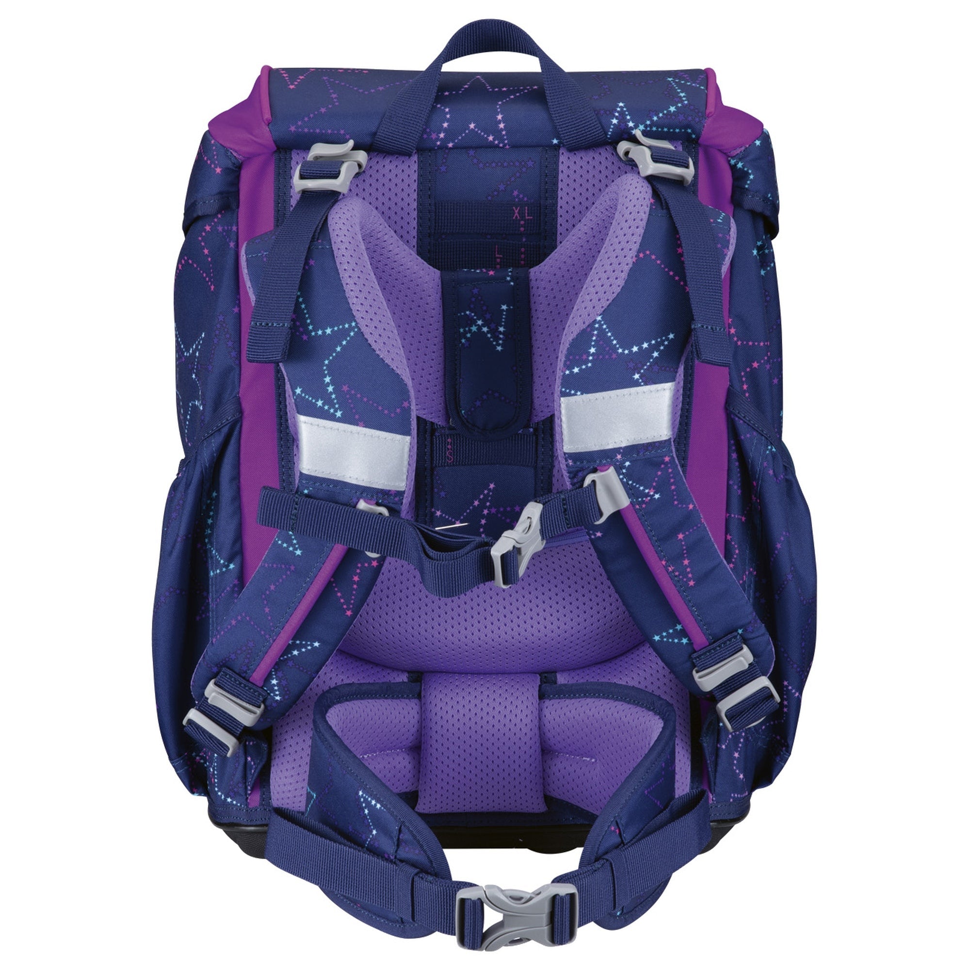 Il sistema di spallacci ben progettato si adatta al corpo in crescita di vostro figlio e offre un comfort ottimale. Con una struttura ergonomica, uno schienale rinforzato e imbottito e cinghie di controllo della posizione, la schiena di vostro figlio viene alleviata. La cintura pettorale regolabile e la cintura pelvica imbottita garantiscono un'ideale distribuzione del peso e un elevato comfort di trasporto.
