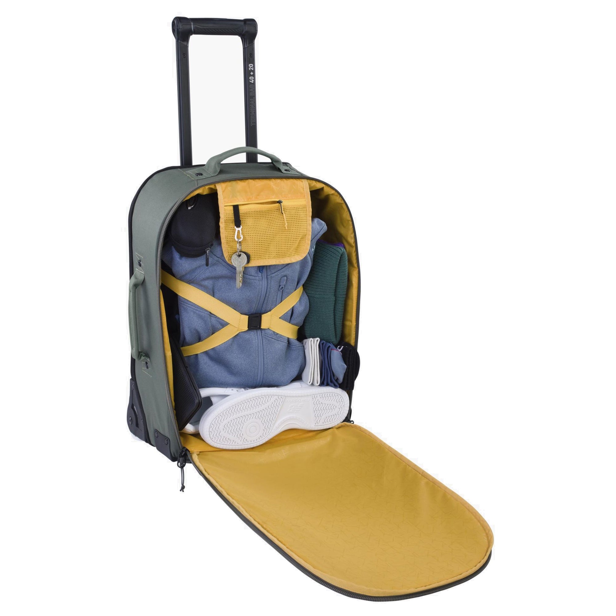 La Evoc Terminal Bag 40+20 è una borsa da viaggio con ruote dal design funzionale, particolarmente adatta ai viaggi aerei nel formato bagaglio a mano. La combinazione di materiali robusti e design ben studiato rende questo trolley un compagno affidabile.
