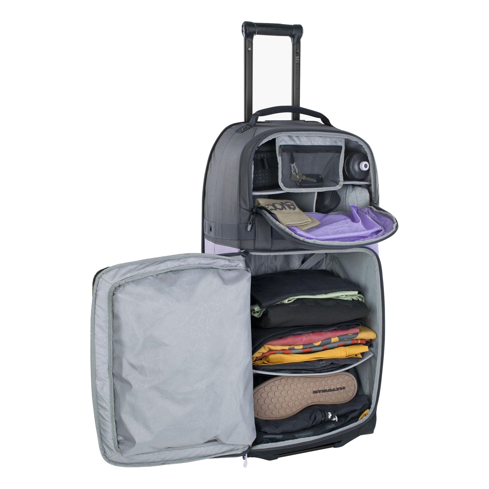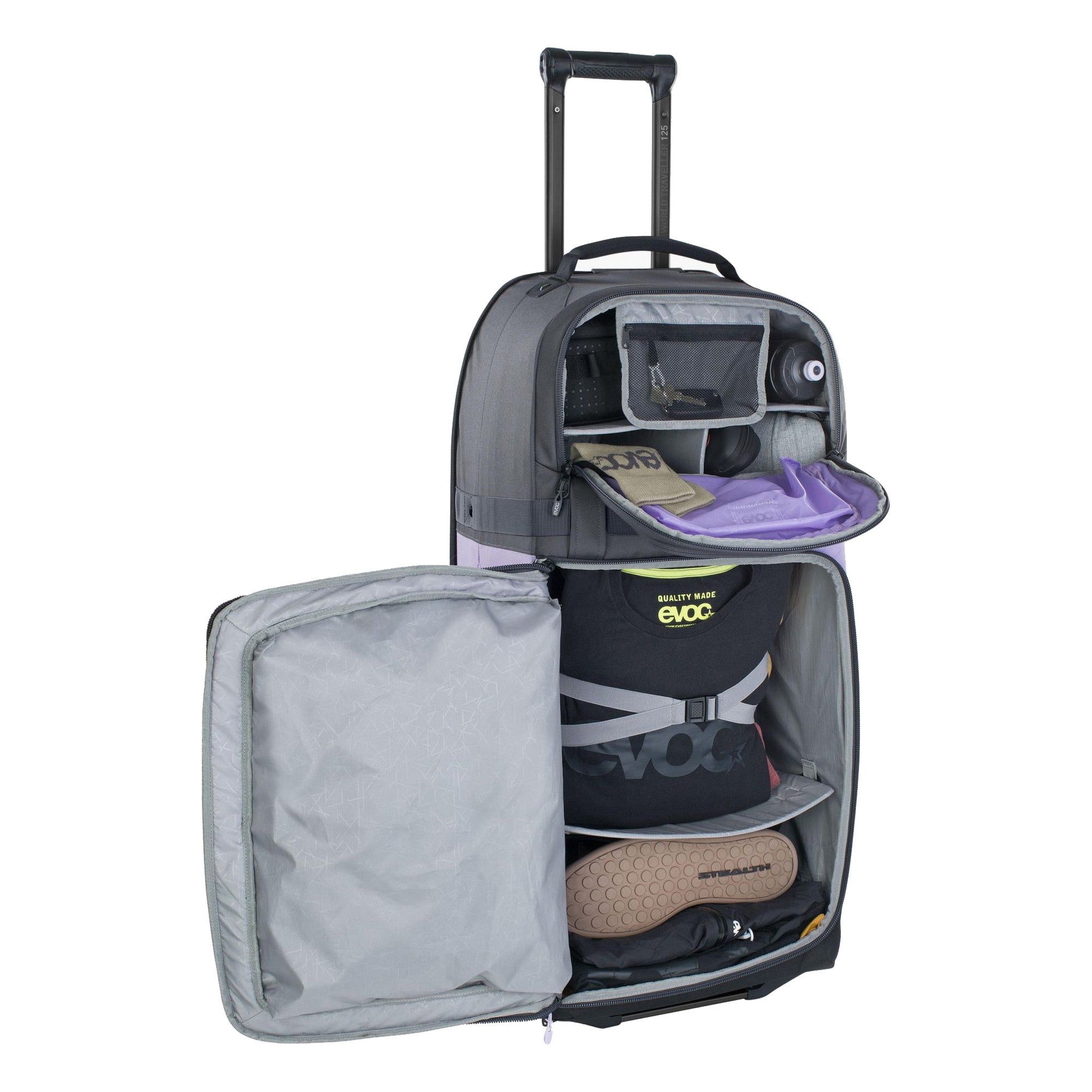 Con un peso di soli 4,20 chilogrammi, l'Evoc World Traveller 125 non è solo leggera, ma anche abbastanza robusta da accompagnarvi nelle vostre avventure. Godetevi la combinazione perfetta di stile e funzionalità che rende la vostra vita più facile durante i viaggi.