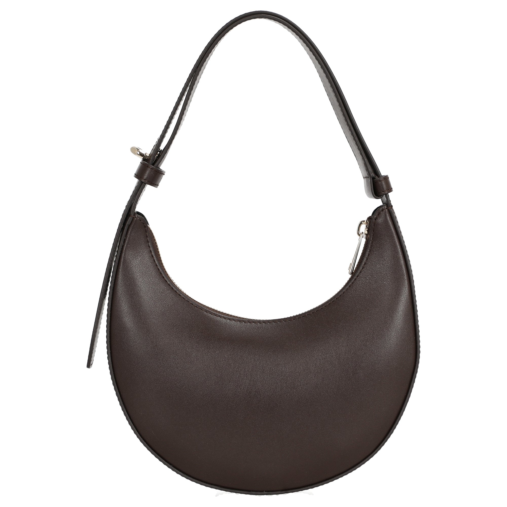 La borsa a tracolla Furla Delizia Mini in elegante ciccolato conquista con il suo formato compatto e la pregiata pelle di vitello morbida. Il suo design a mezzaluna emana un'eleganza senza tempo, rendendola la compagna perfetta per donne attente allo stile che apprezzano funzionalità e dettagli raffinati.
