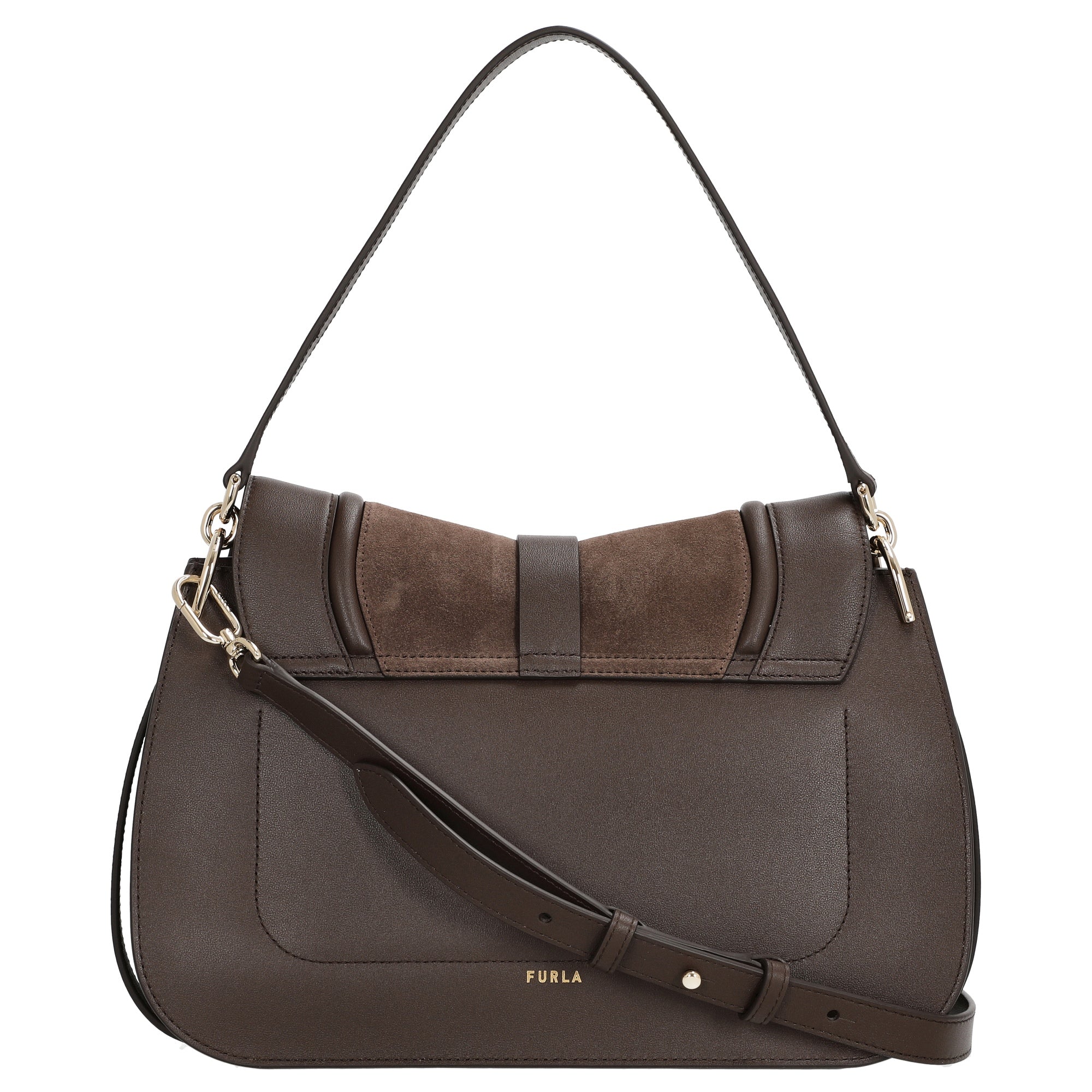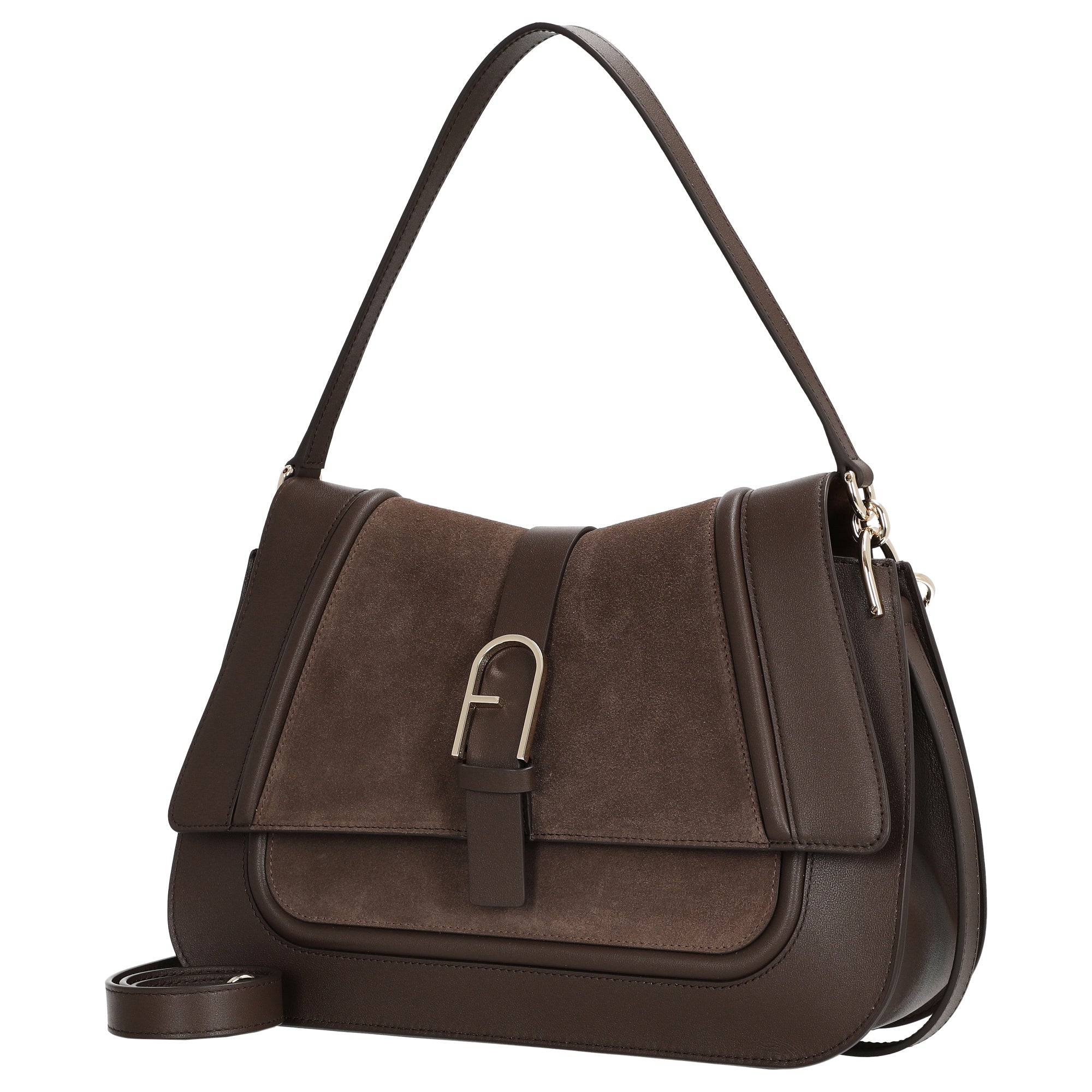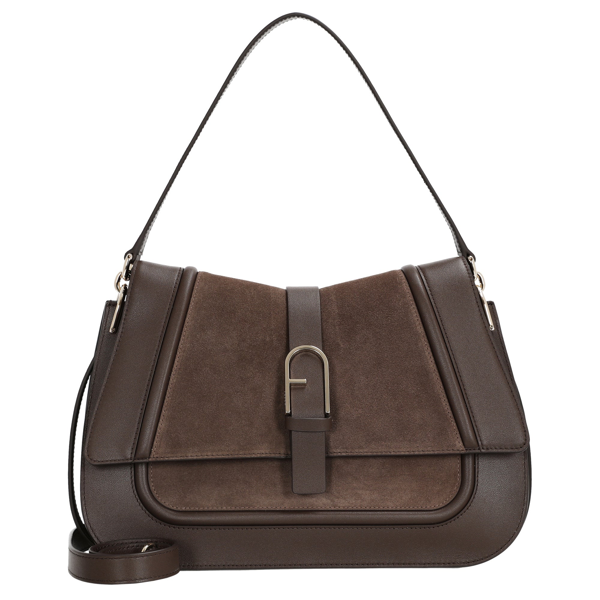 Die Furla Flow L Schultertasche in edlem toni espresso vereint zeitlose Eleganz mit funktionalem Design. Gefertigt aus hochwertigem Veloursleder und veredelt durch Details aus feinem Kalbsleder, ist sie der perfekte Begleiter für stilbewusste Frauen, die Wert auf Qualität und Vielseitigkeit legen.