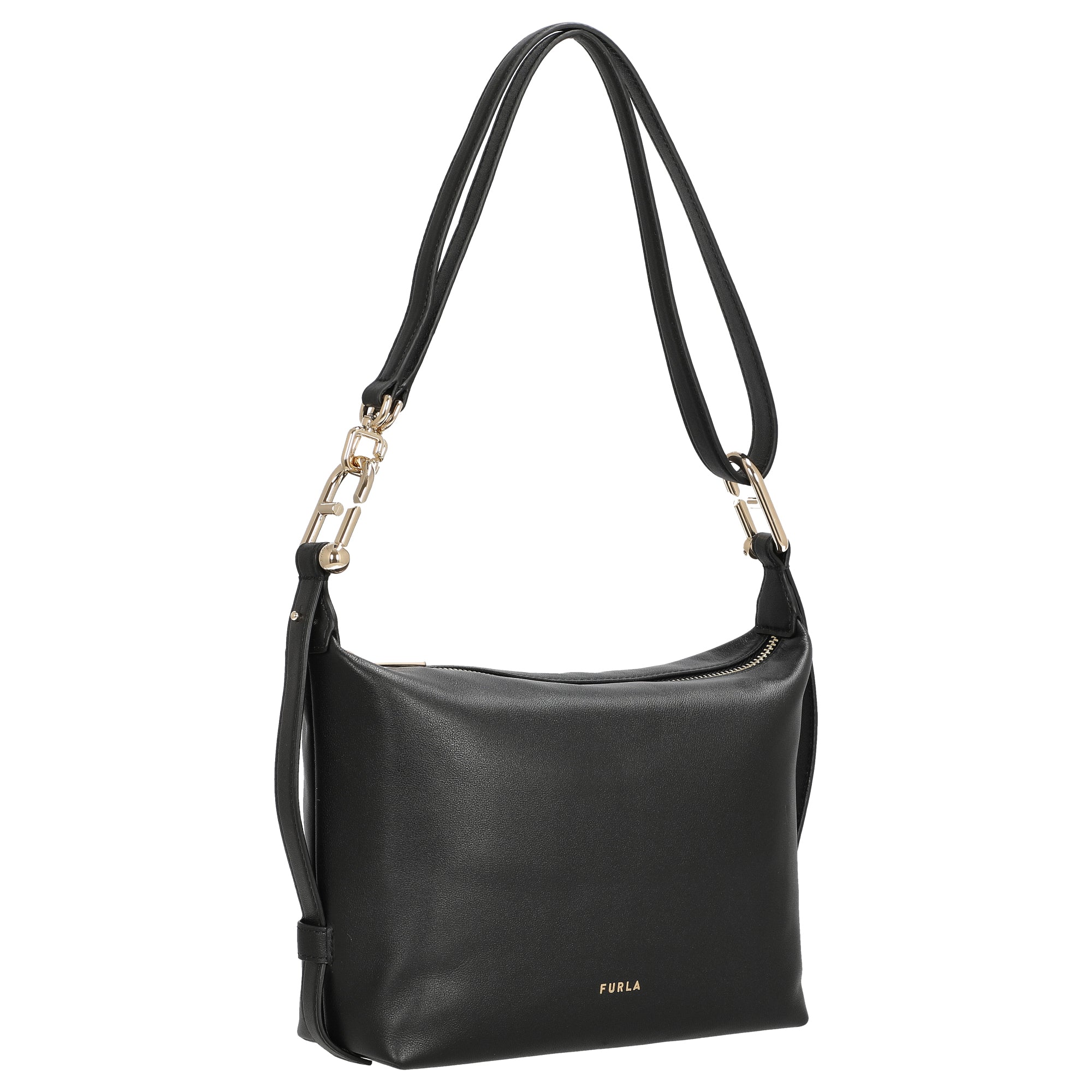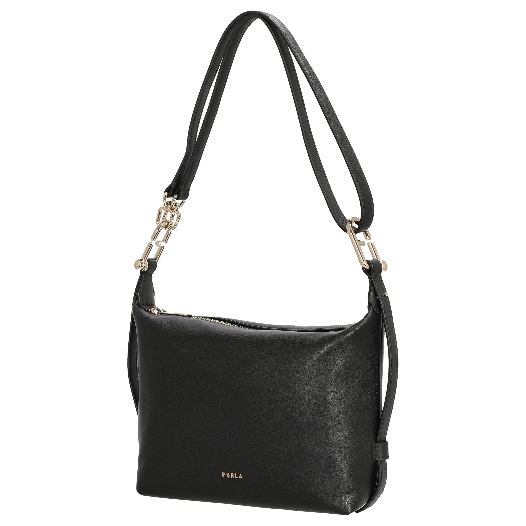 Die Furla Tonie Mini Hobo Schultertasche in elegantem Schwarz vereint zeitloses Design mit praktischer Funktionalität. Dieses kompakte Modell ist der perfekte Begleiter für stilbewusste Frauen, die Wert auf hochwertige Details und vielseitige Trageoptionen legen.