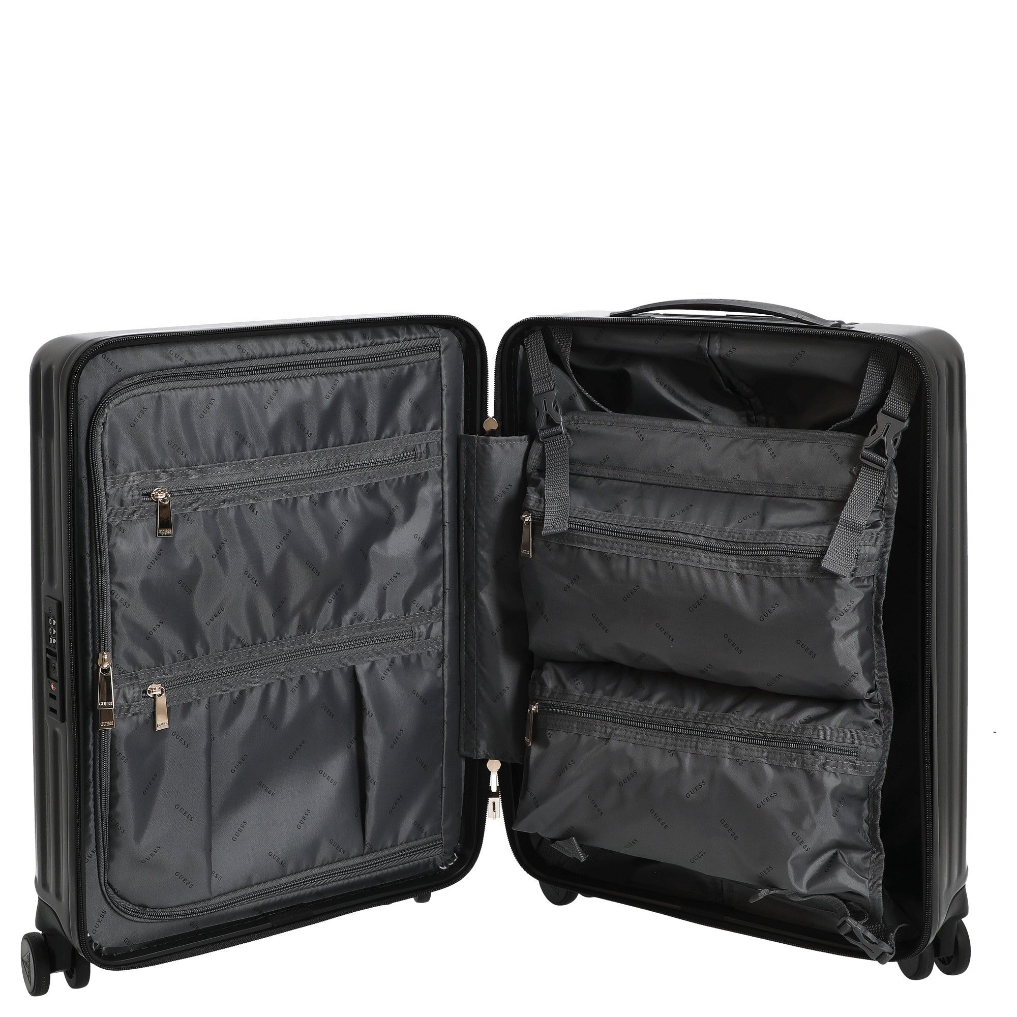 Il Guess Centennial 18 IN combina dettagli funzionali con un design essenziale, diventando così un compagno affidabile per ogni viaggio.