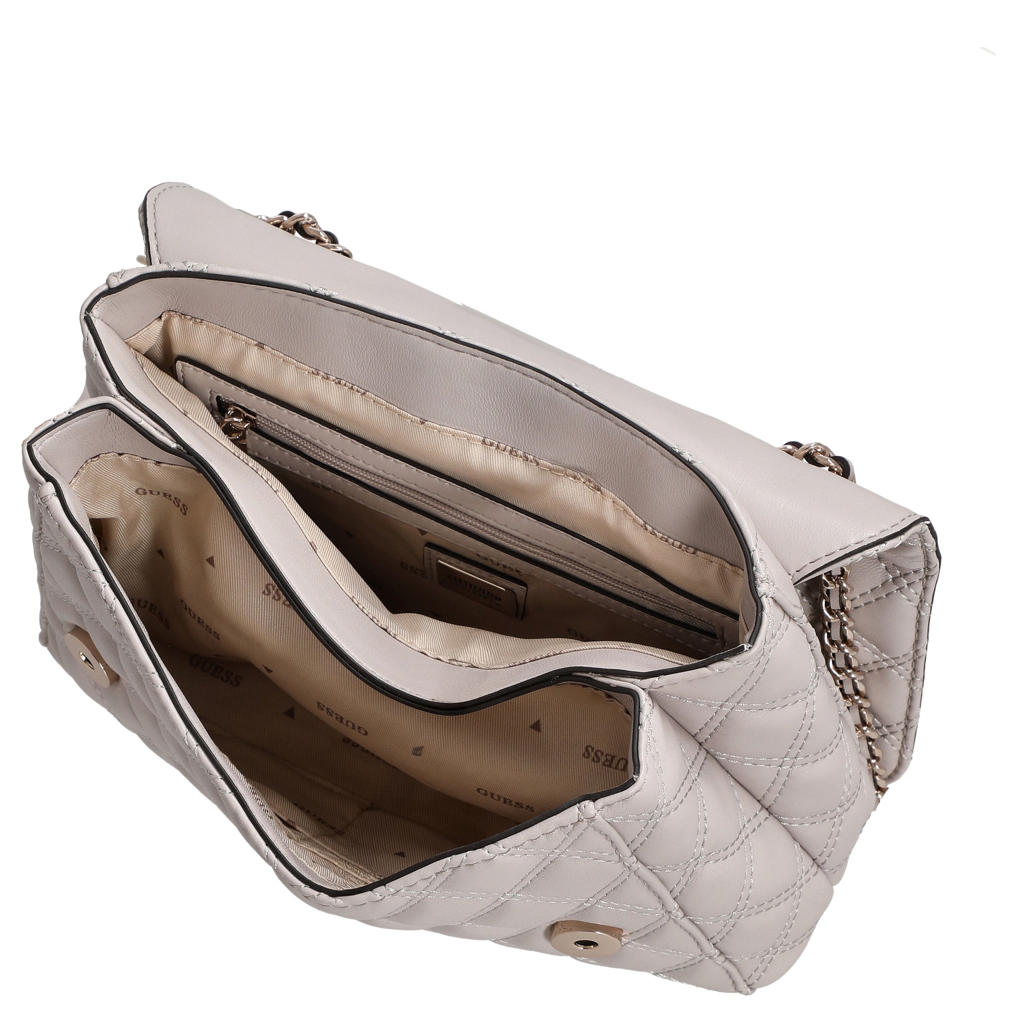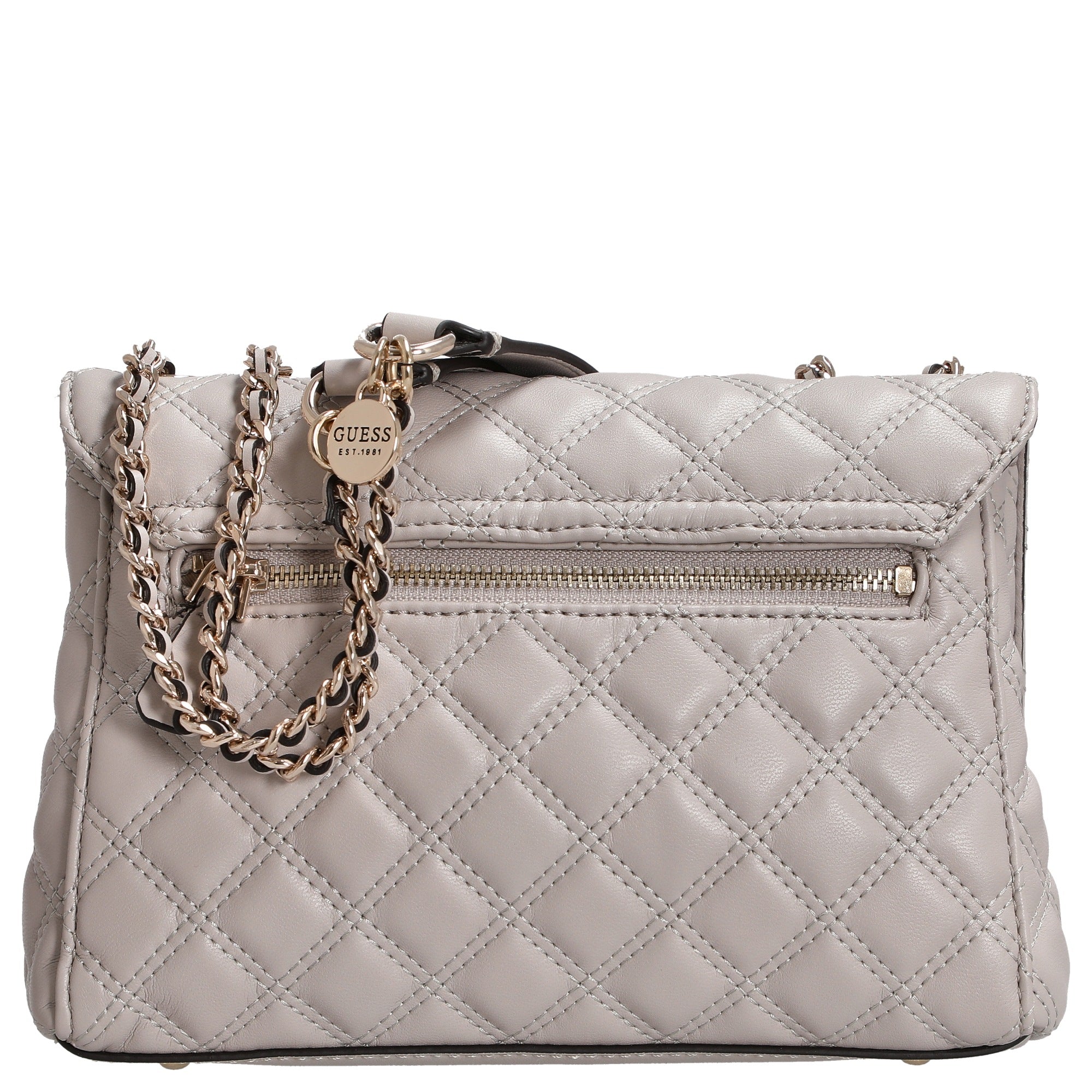 La borsa a tracolla trasformabile GUESS Giully II a 2 scomparti in elegante taupe è un accessorio di stile per donne attente alla moda che valorizzano funzionalità e design. Con il suo aspetto trapuntato e il raffinato dettaglio a catena sulla tracolla regolabile, aggiunge un tocco di moda e ti accompagna con sicurezza nella vita quotidiana e nelle occasioni speciali.