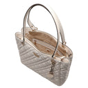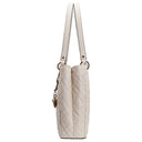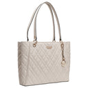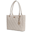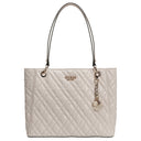Con la Guess Isemay Noel Tote in elegante Off White scegliete una borsa da donna che unisce un'eleganza senza tempo a un tocco moderno. Il distintivo motivo trapuntato conferisce alla shopper una struttura raffinata, mentre il discreto logo sul davanti aggiunge un accento di stile.
