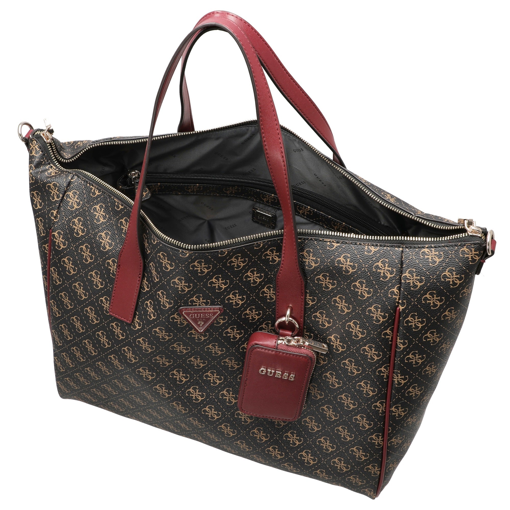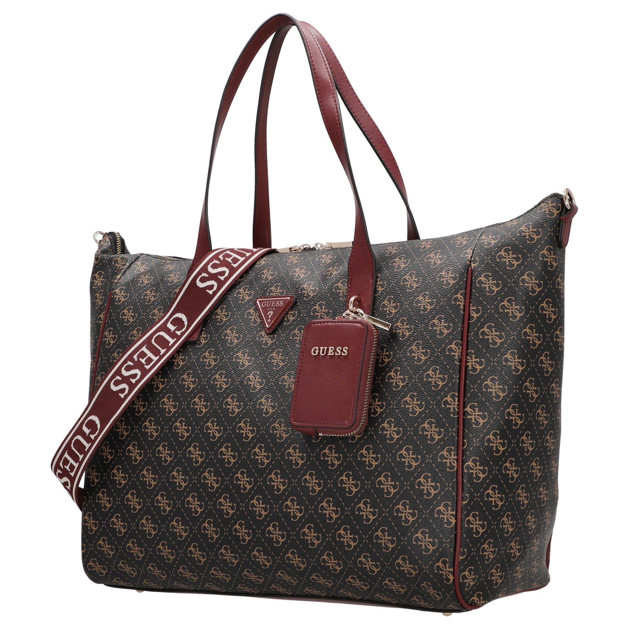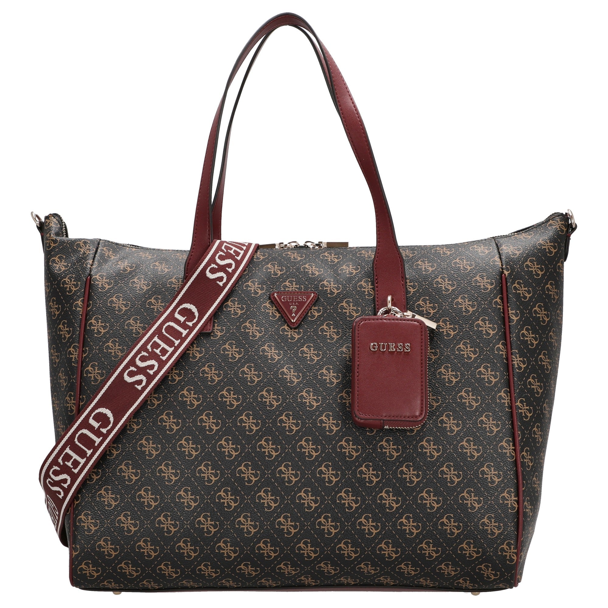 Sia in ufficio, durante lo shopping o in una passeggiata in città, il Guess Latona Carryon L Shopper in brown logo è un compagno versatile che unisce perfettamente stile e praticità quotidiana.