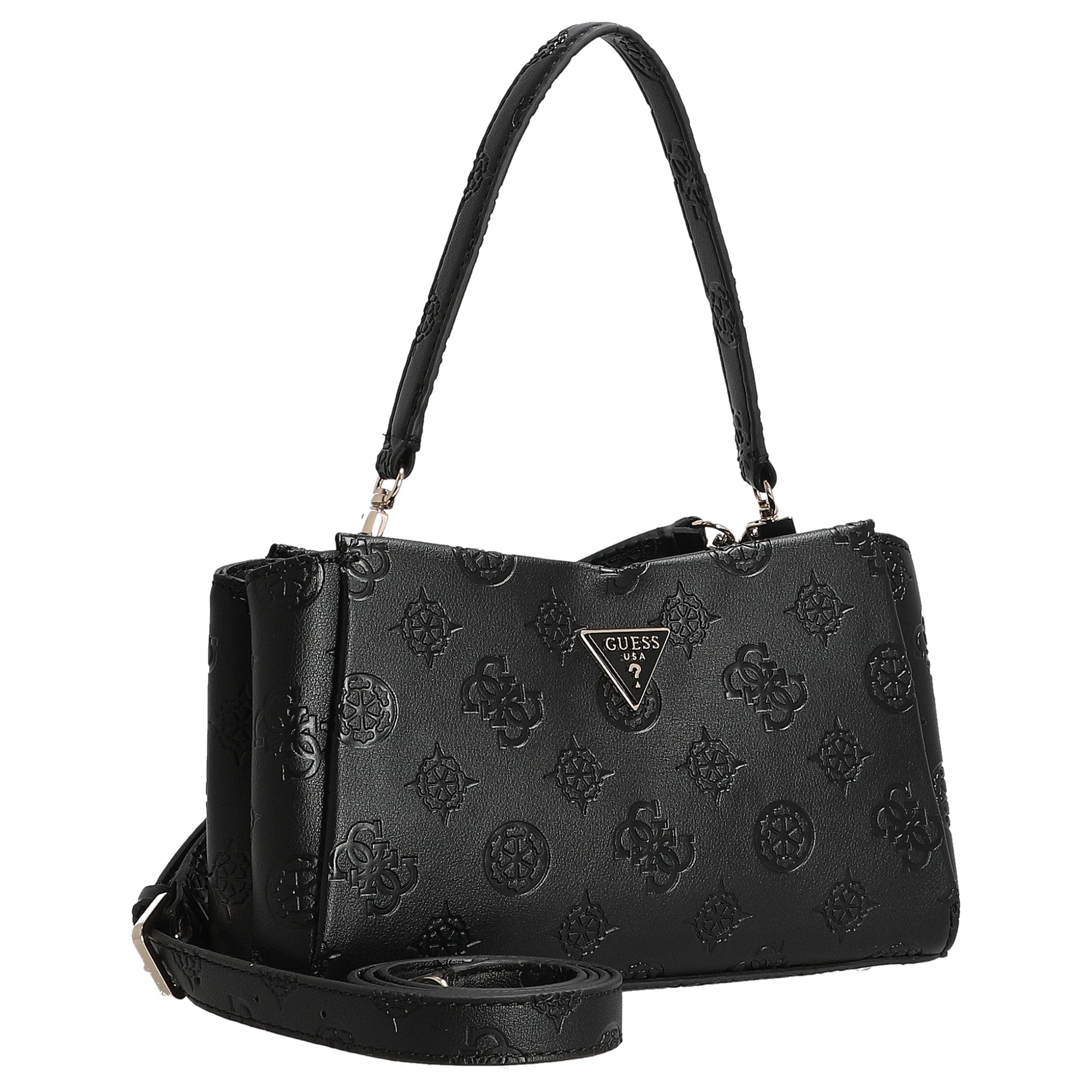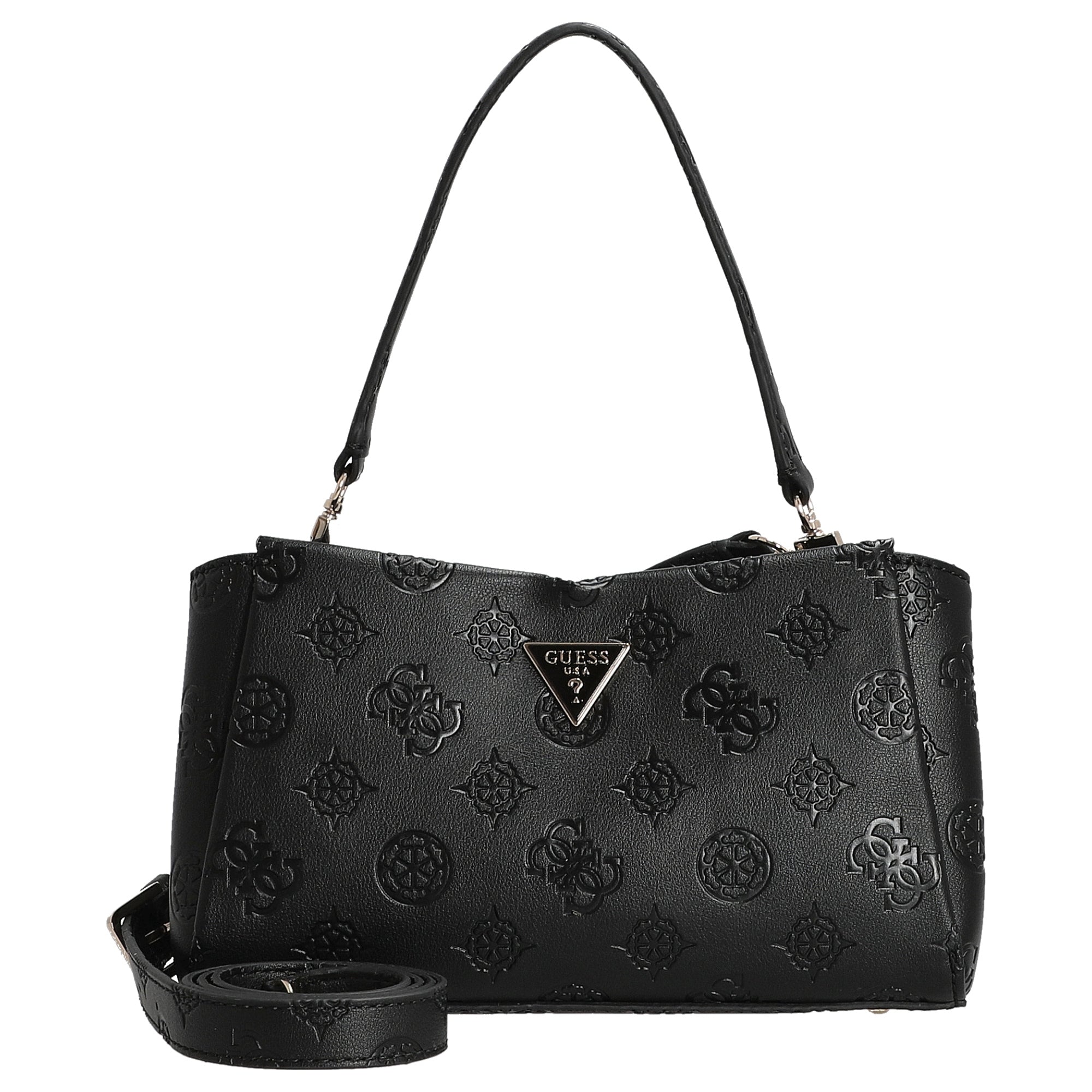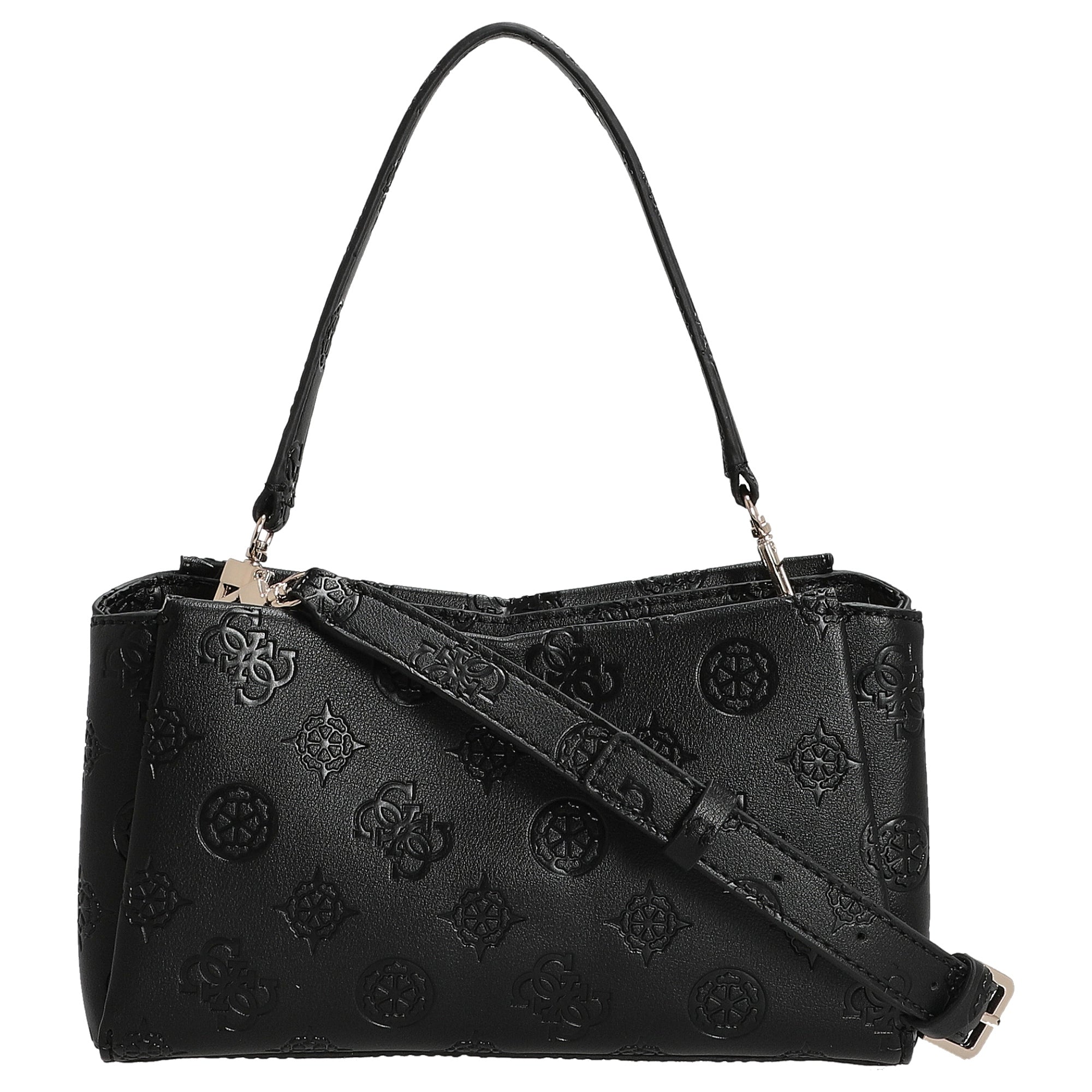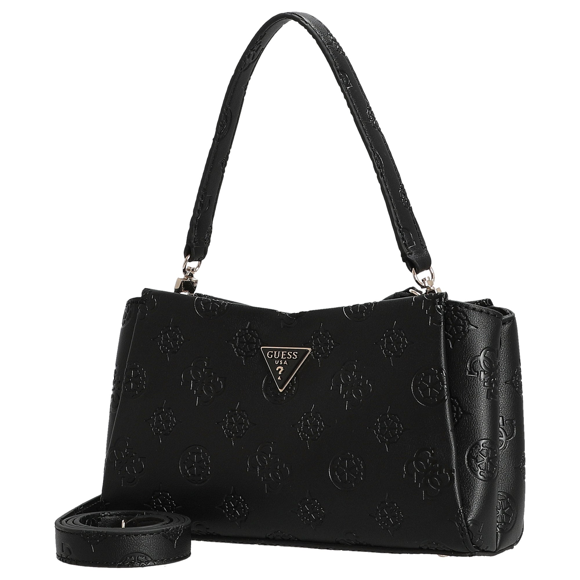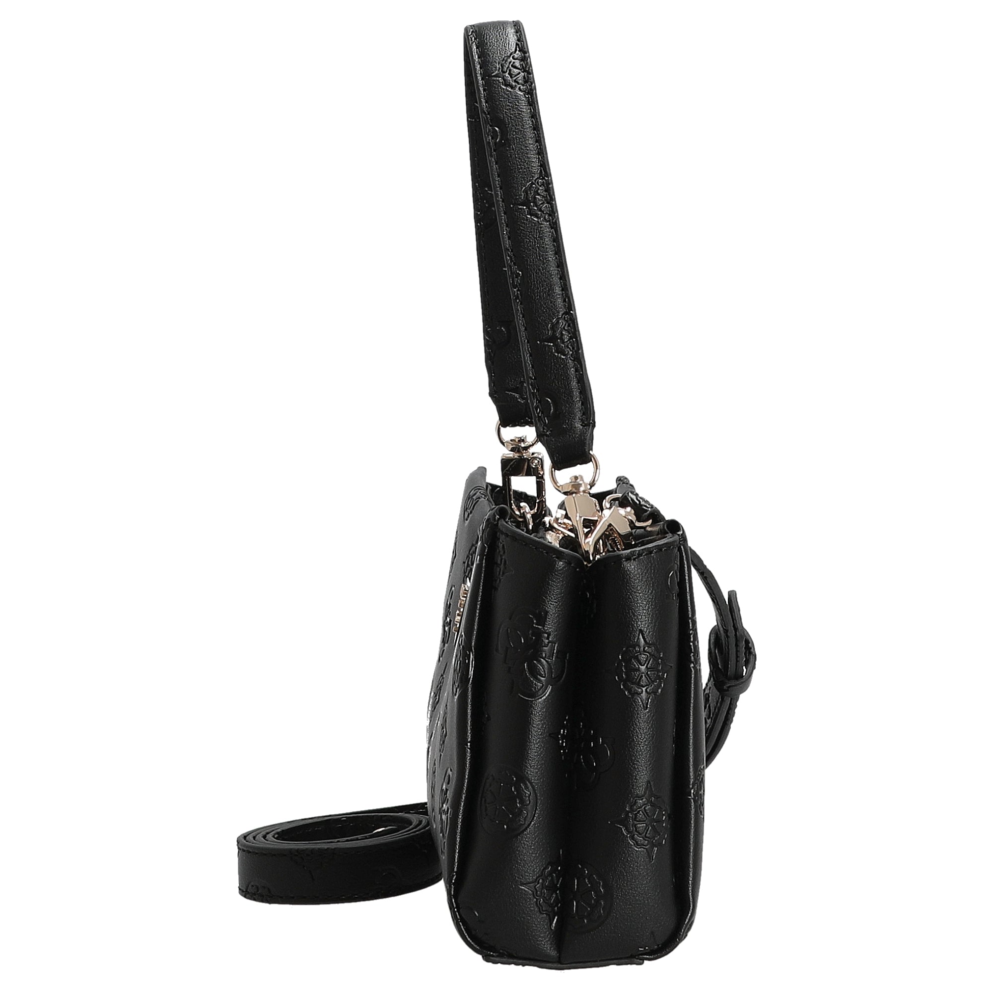 La borsa a tracolla Guess Tisha Crossbody in elegante nero unisce uno stile alla moda con la praticità quotidiana. La pelle sintetica di alta qualità con motivo logo in rilievo conferisce alla borsa un aspetto lussuoso, versatile da abbinare – ideale per donne attente ai dettagli.