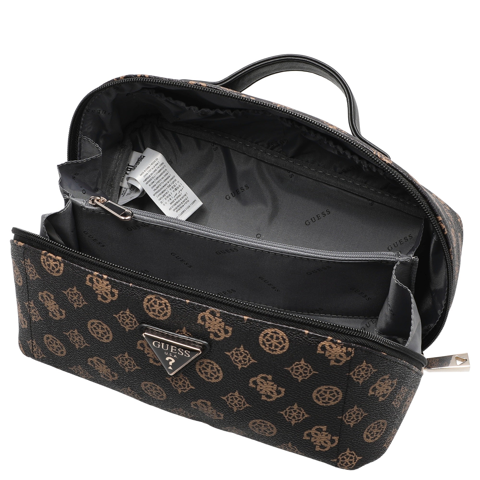 Ob auf Geschäftsreise oder im privaten Gebrauch – der GUESS Kulturbeutel in Braun ist ein praktischer und stilvoller Begleiter für die Reise.