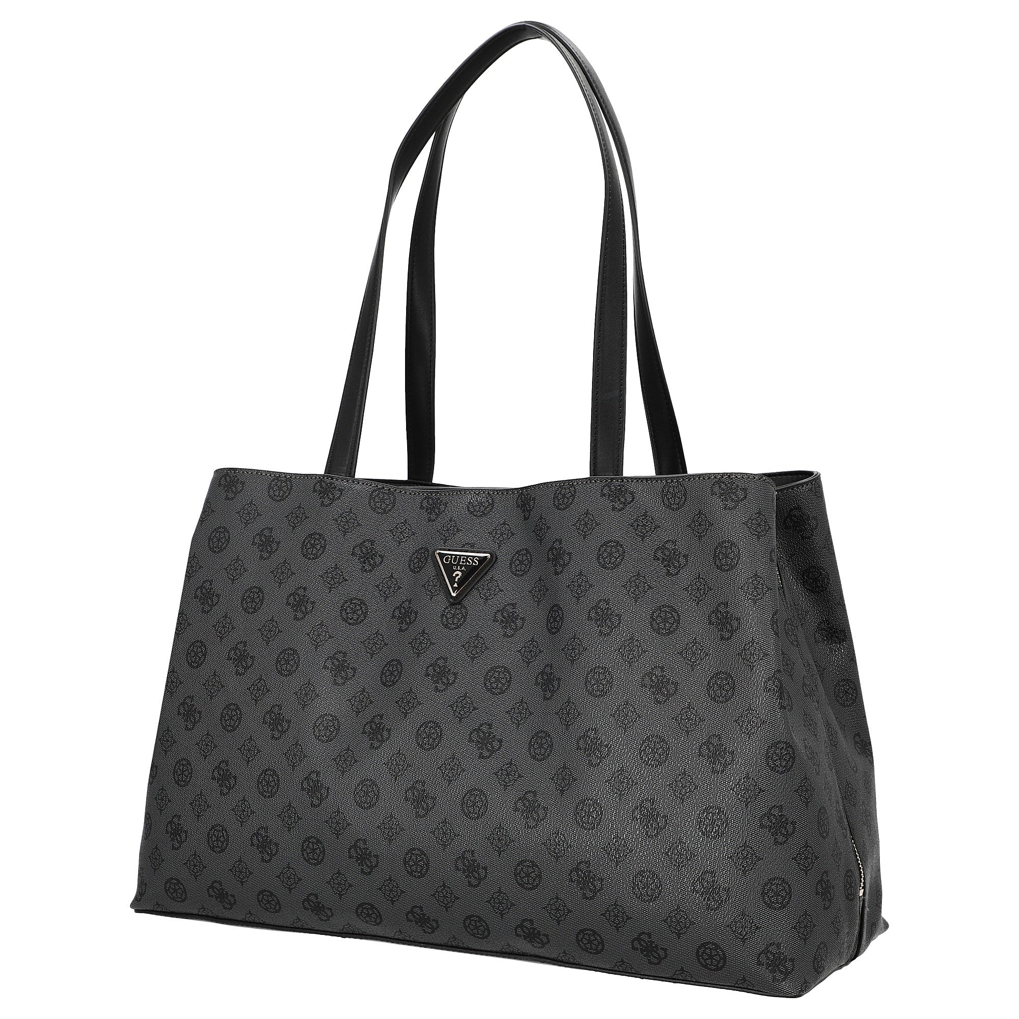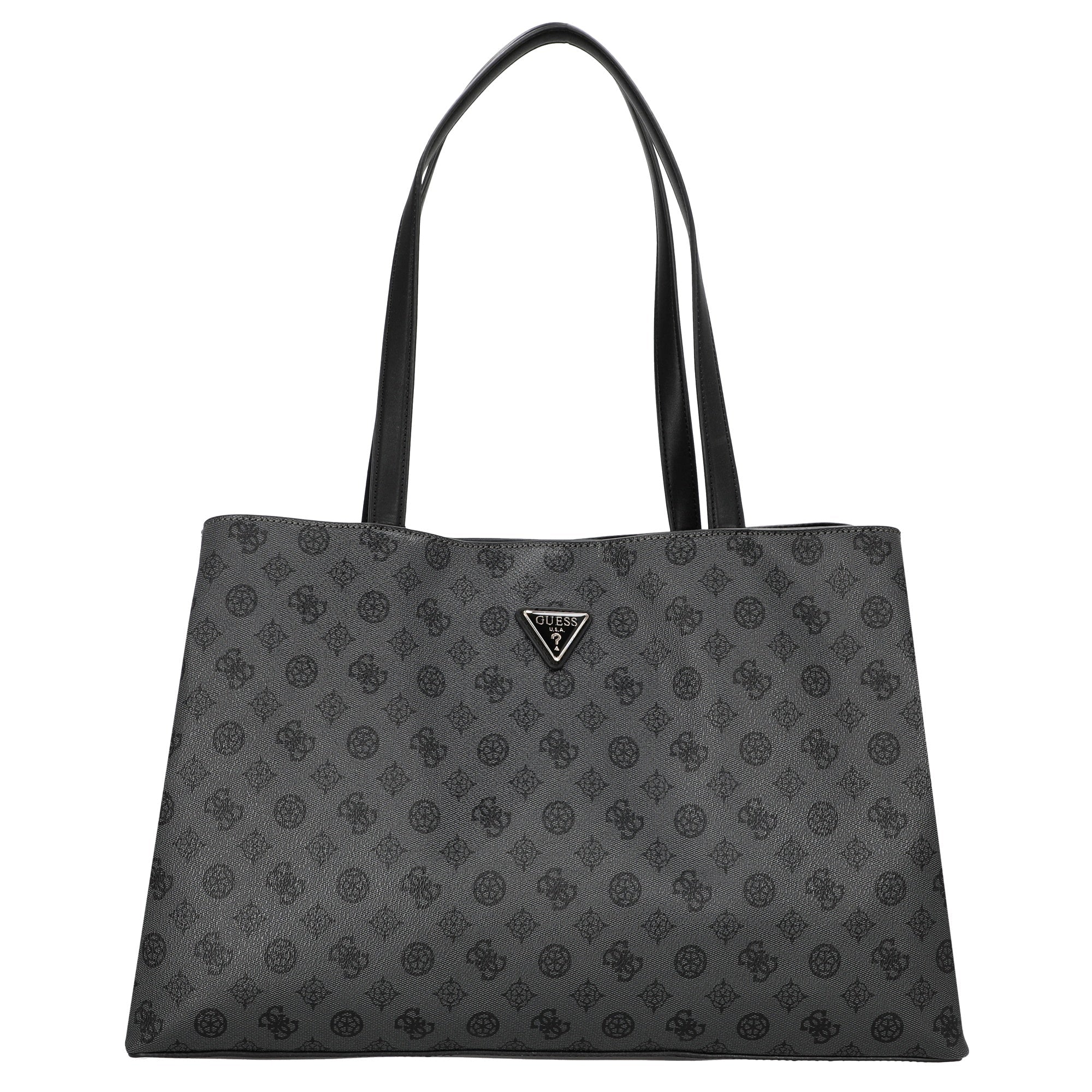 Con la Guess Wilder Shopper in charcoal scegli una borsa elegante che unisce perfettamente stile e funzionalità, valorizzando il tuo guardaroba.