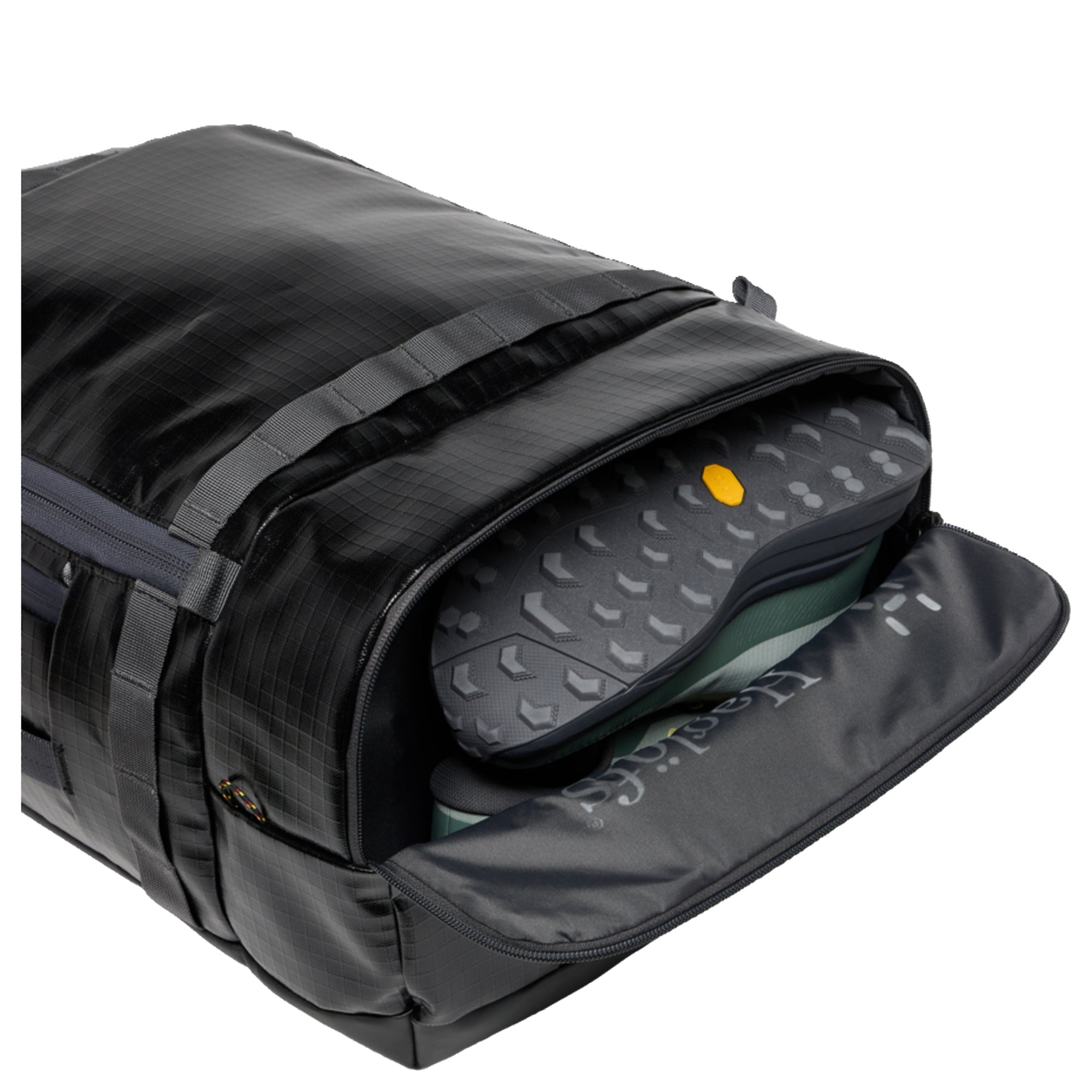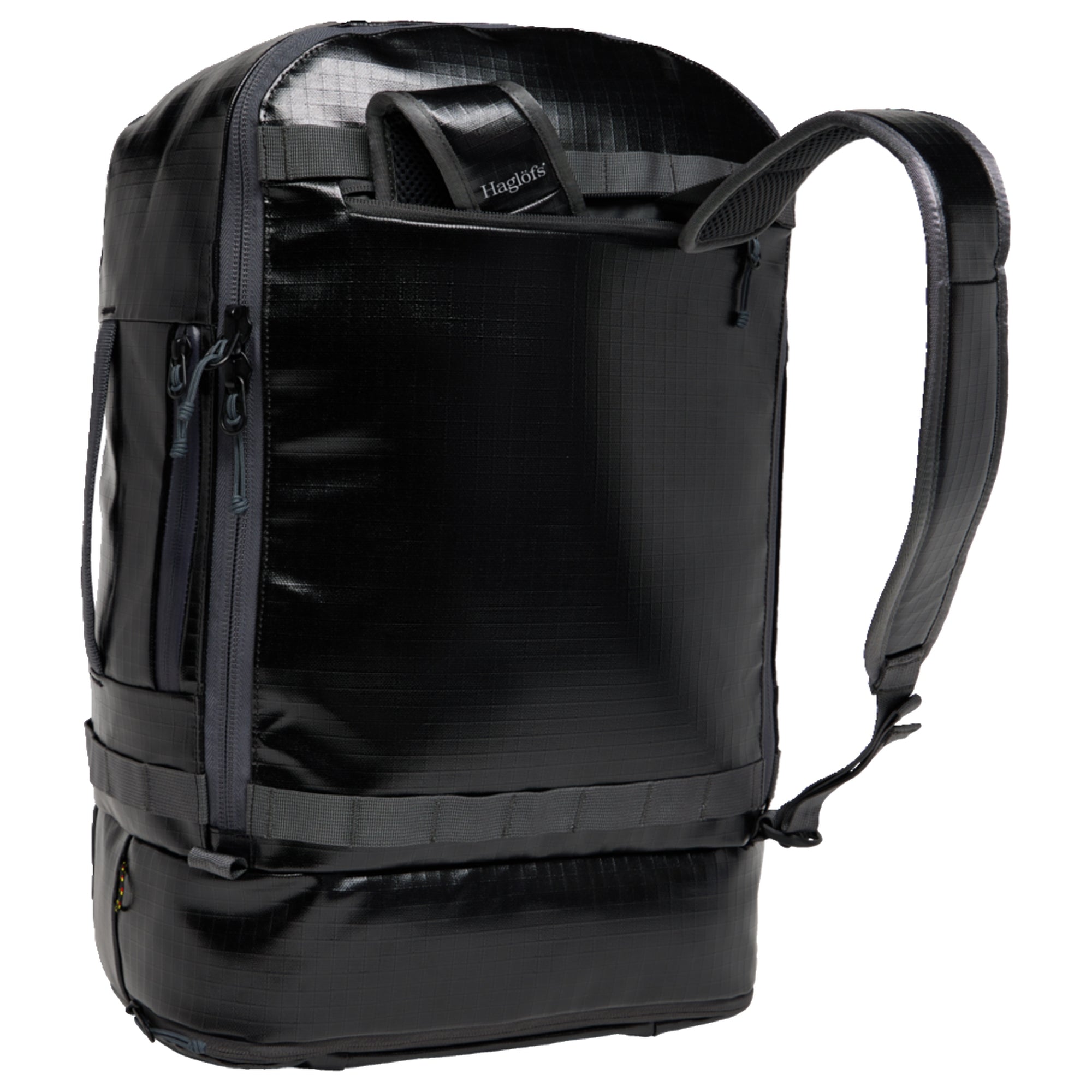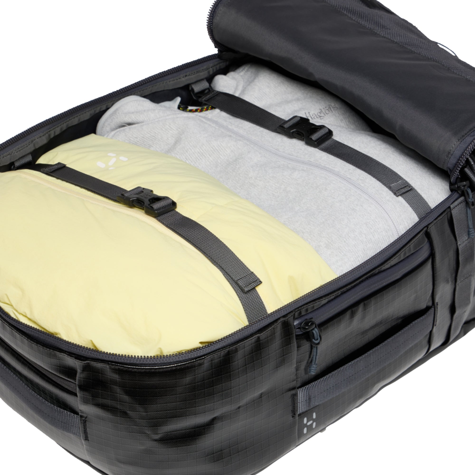 La Haglöfs Magma 42 è una borsa da viaggio funzionale nel colore true black/magnetite, particolarmente adatta per brevi viaggi e attività all'aperto.