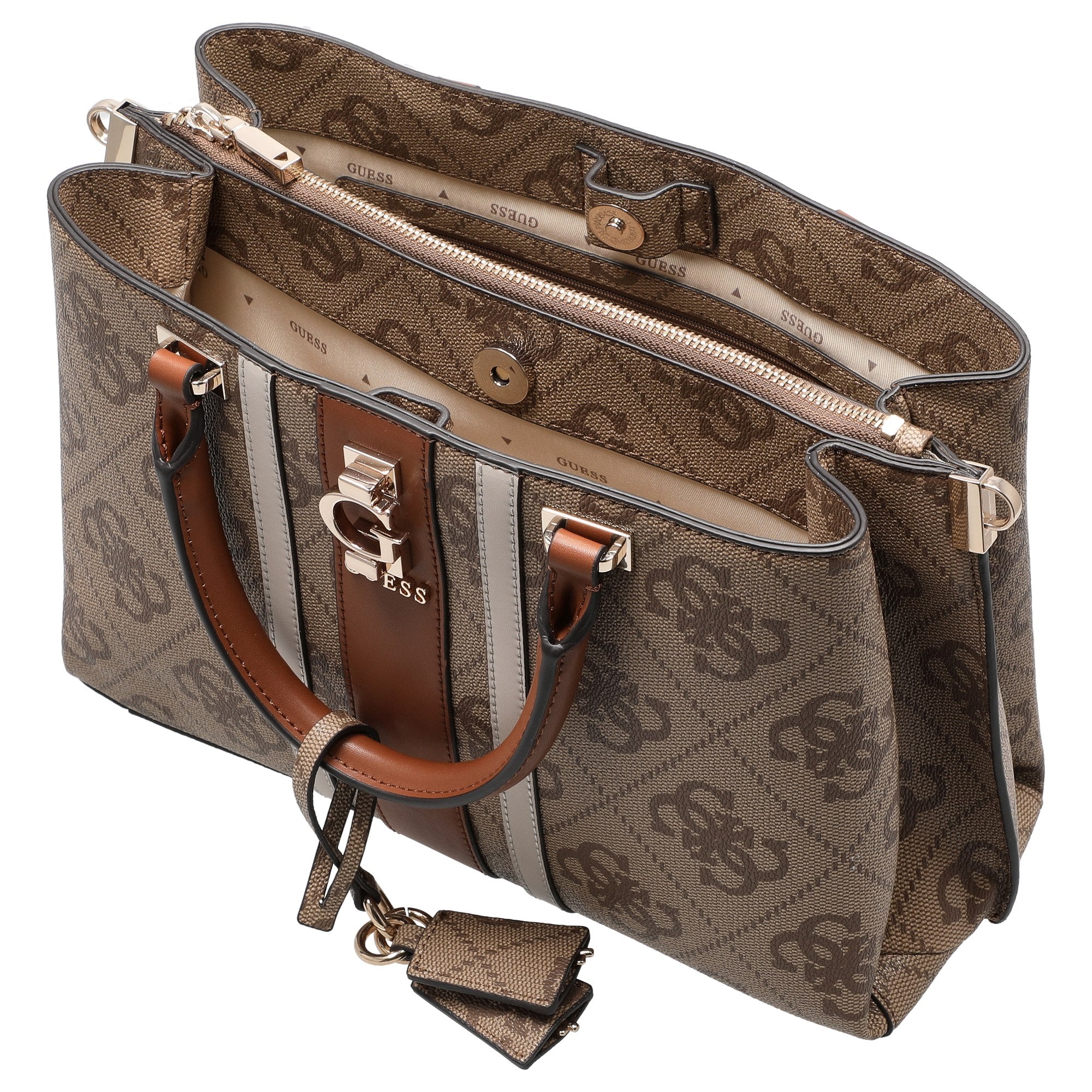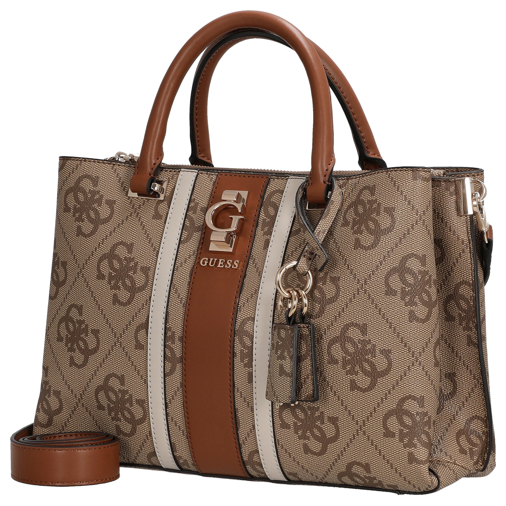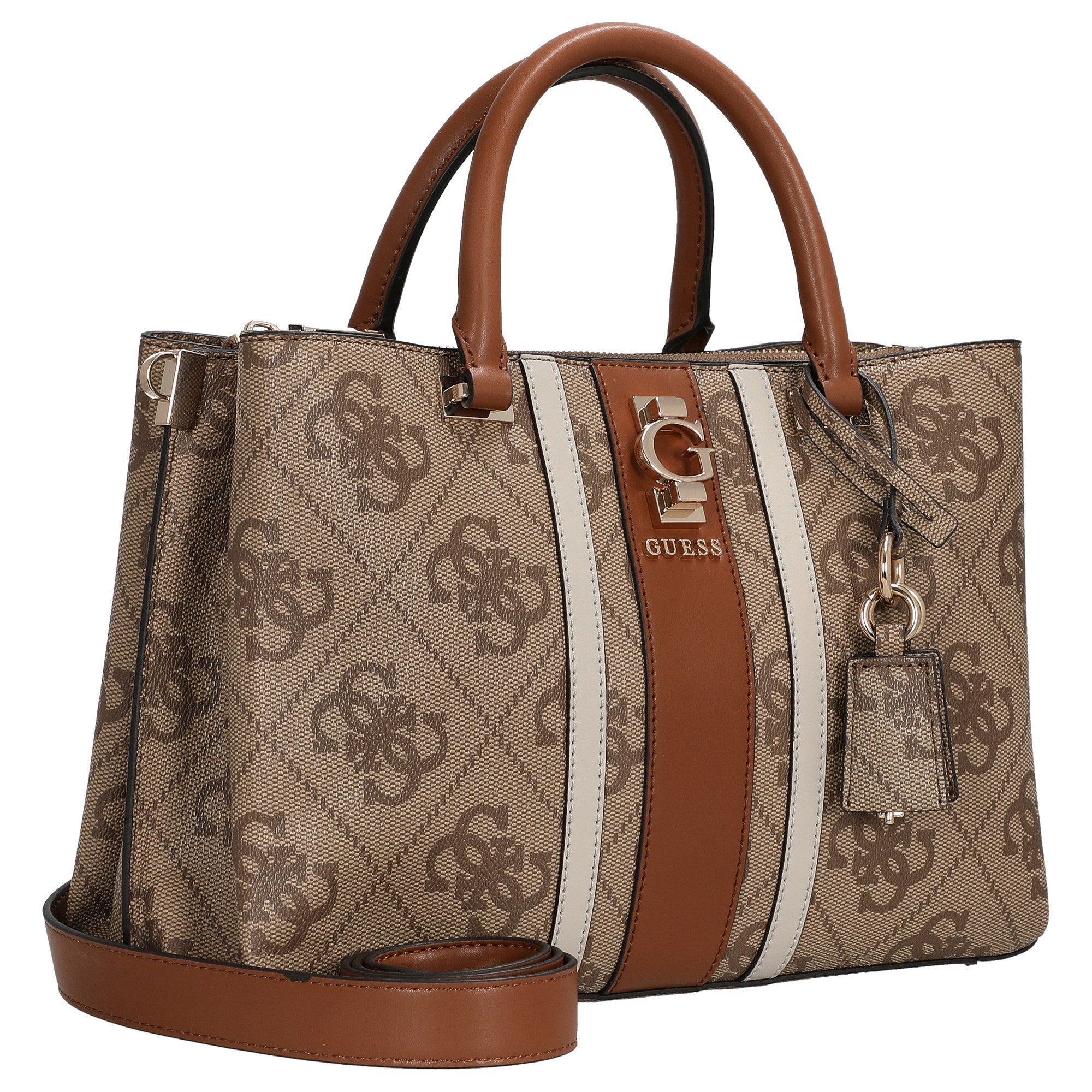 Sia in ufficio che durante una passeggiata in città, la borsa a mano Guess in latte unisce perfettamente eleganza alla moda e funzionalità pratica.