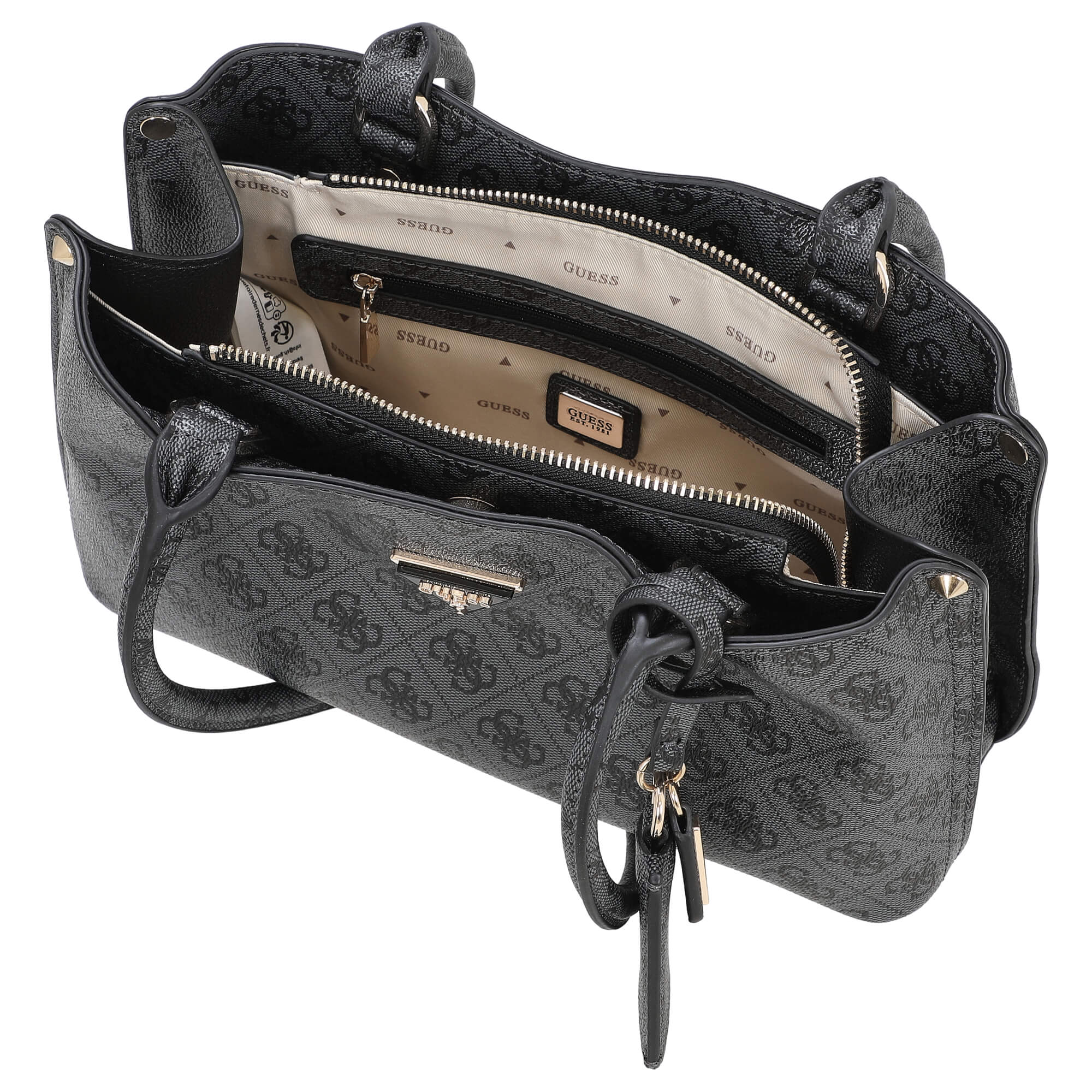 - Iconico logo Guess: Il logo metallico Guess sulla parte anteriore aggiunge un accento moderno e sottolinea l'esclusività della borsa.