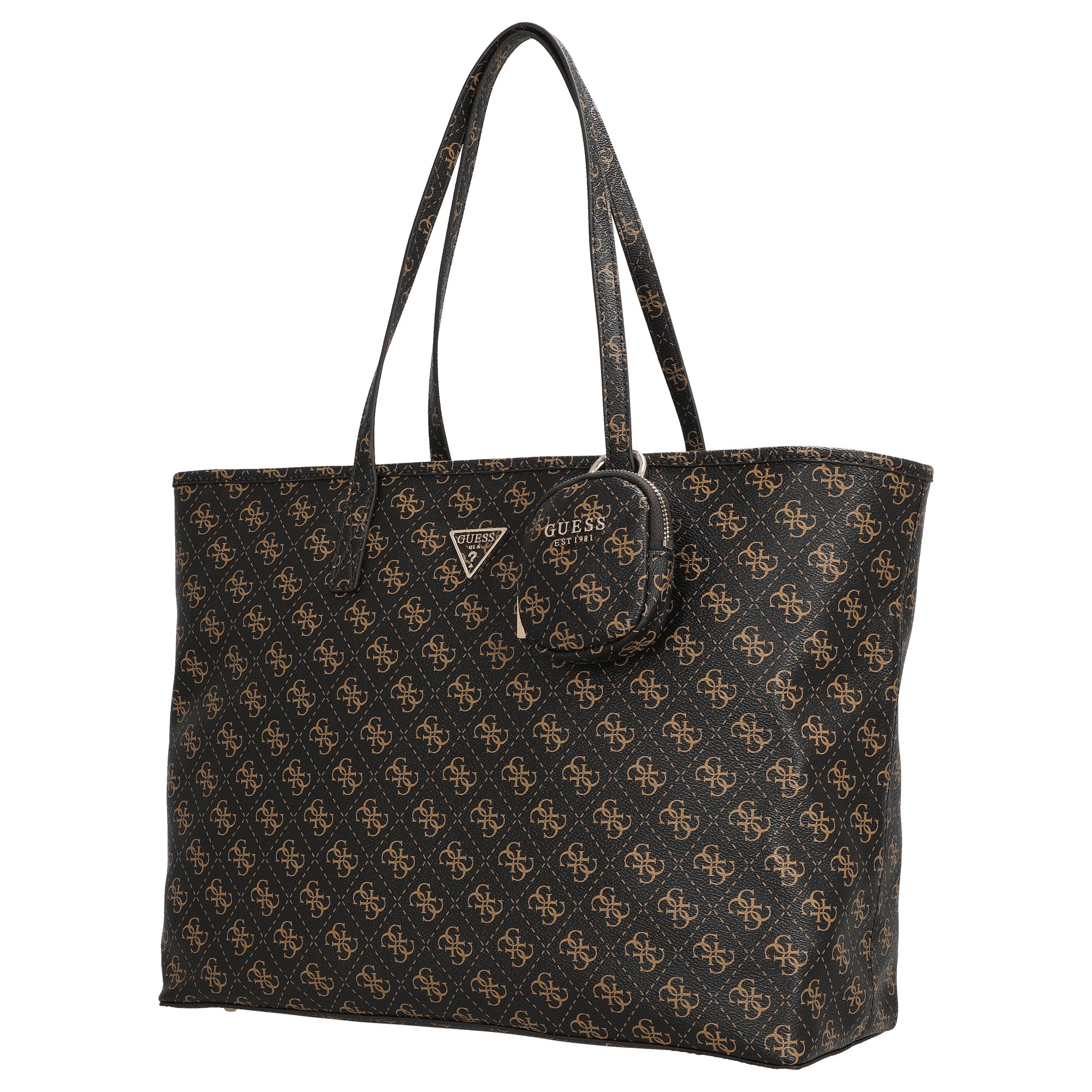 Guess Power Play II Tech Tote - Shopper L 39 cm con pochette rimovibile (brown logo)