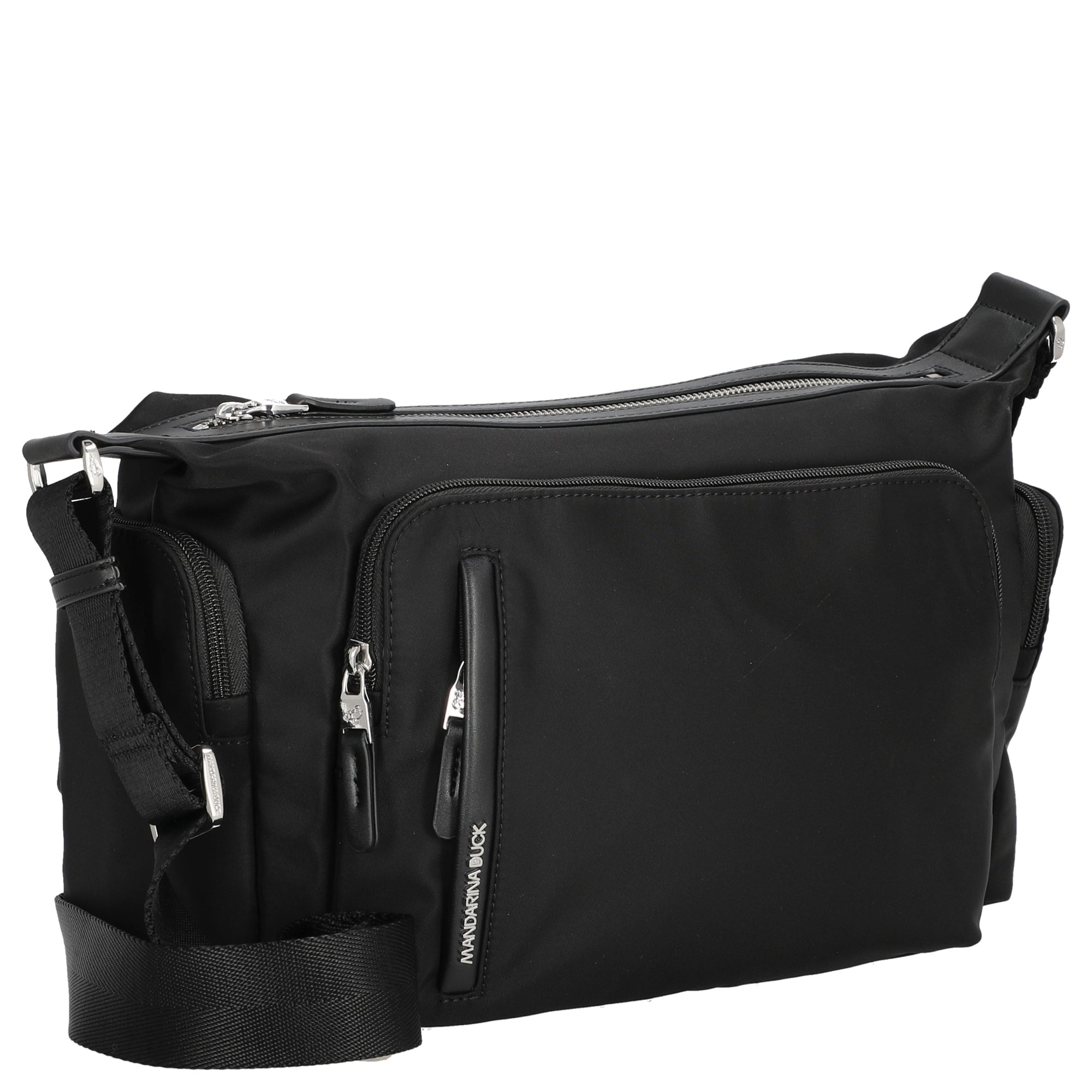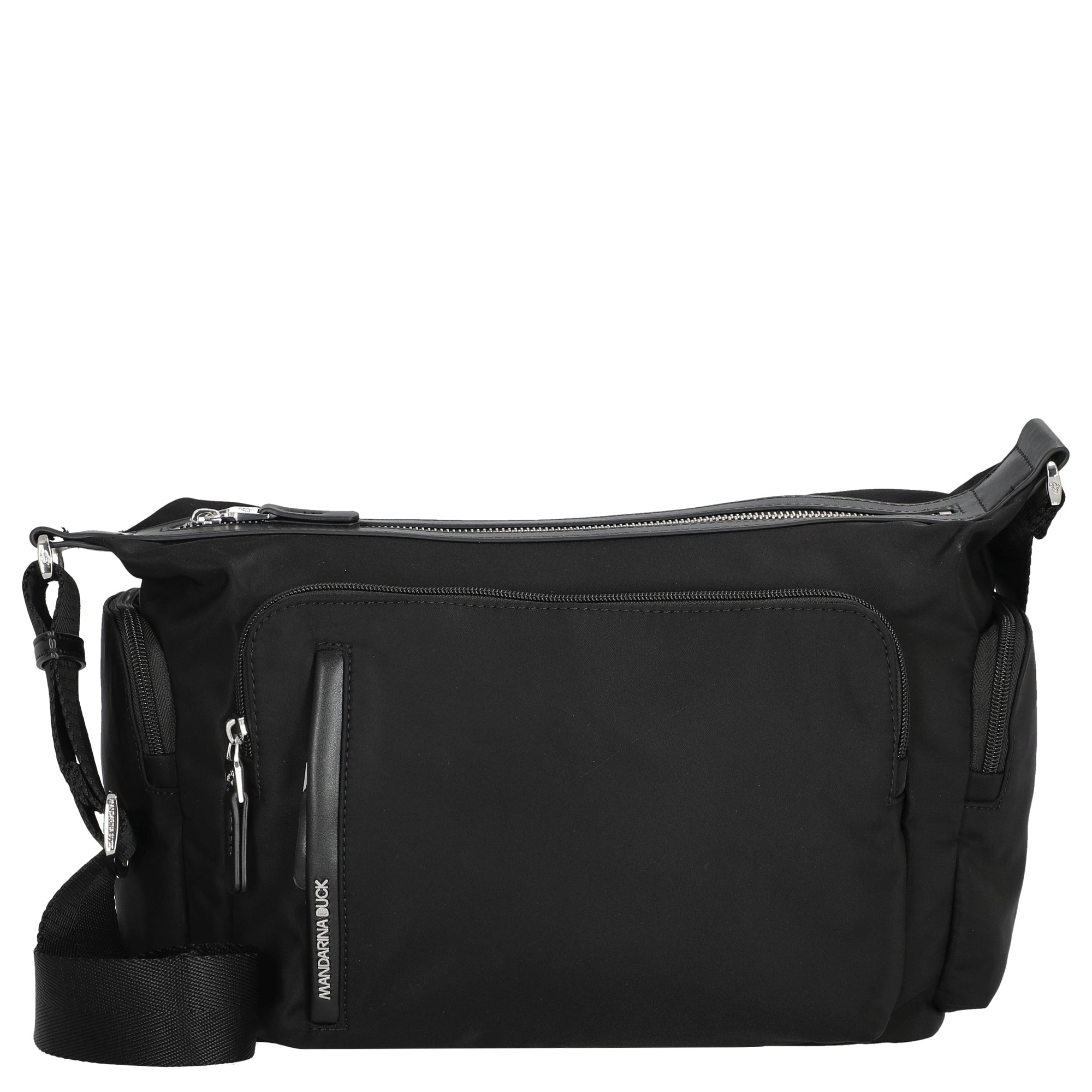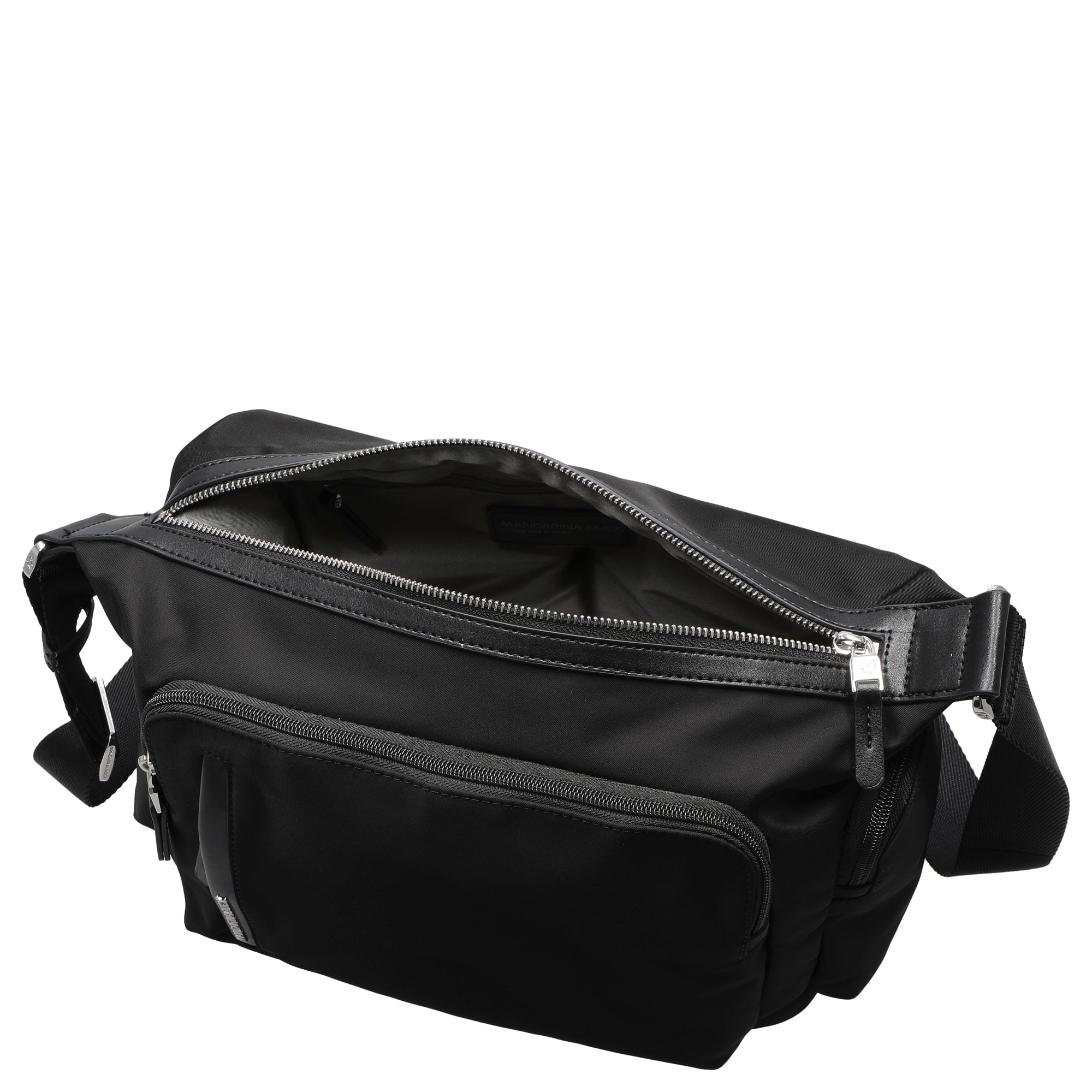 Ob beim Stadtbummel oder auf dem Weg ins Büro – diese schwarze Umhängetasche von Mandarina Duck ist ein stilvoller und praktischer Begleiter für jeden Tag.