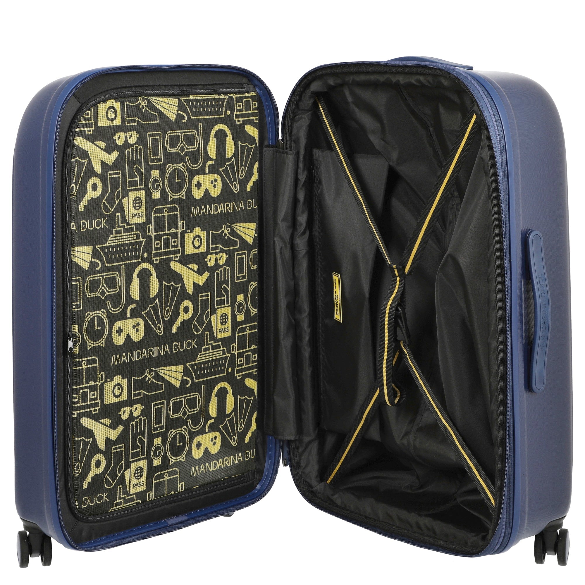 Scoprite il Mandarina Duck Logoduck+ trolley a 4 ruote nel elegante colore nero – il vostro compagno ideale per i viaggi. Questo trolley unisce un design elegante a funzioni pratiche che rendono il viaggio più facile.