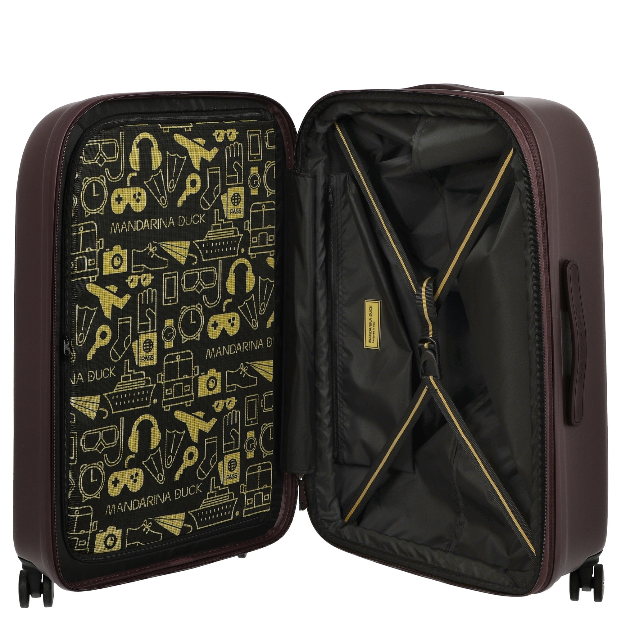 Scoprite il Mandarina Duck Logoduck+ trolley a 4 ruote nel elegante colore nero – il vostro compagno ideale per i viaggi. Questo trolley unisce un design elegante a funzioni pratiche che rendono il viaggio più facile.