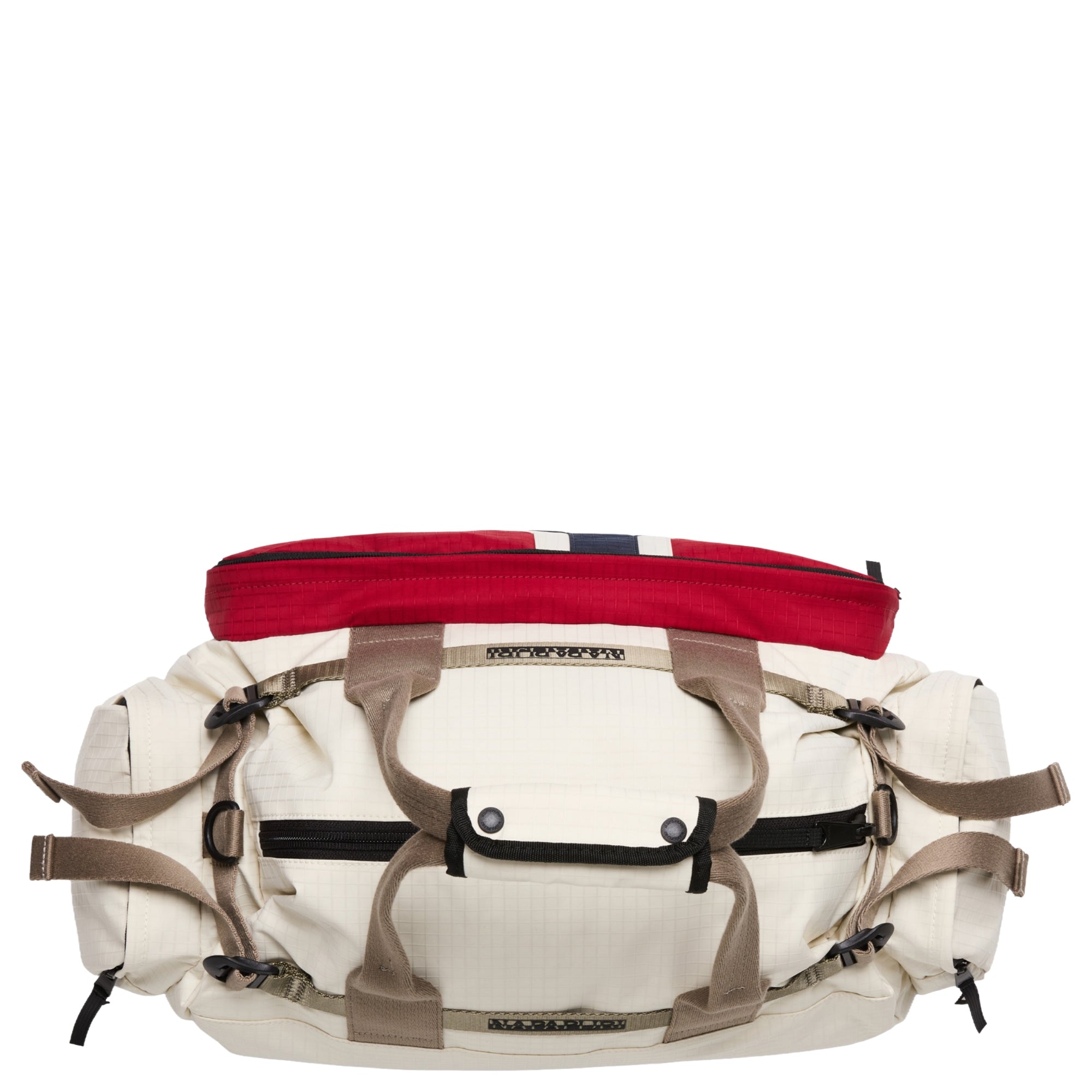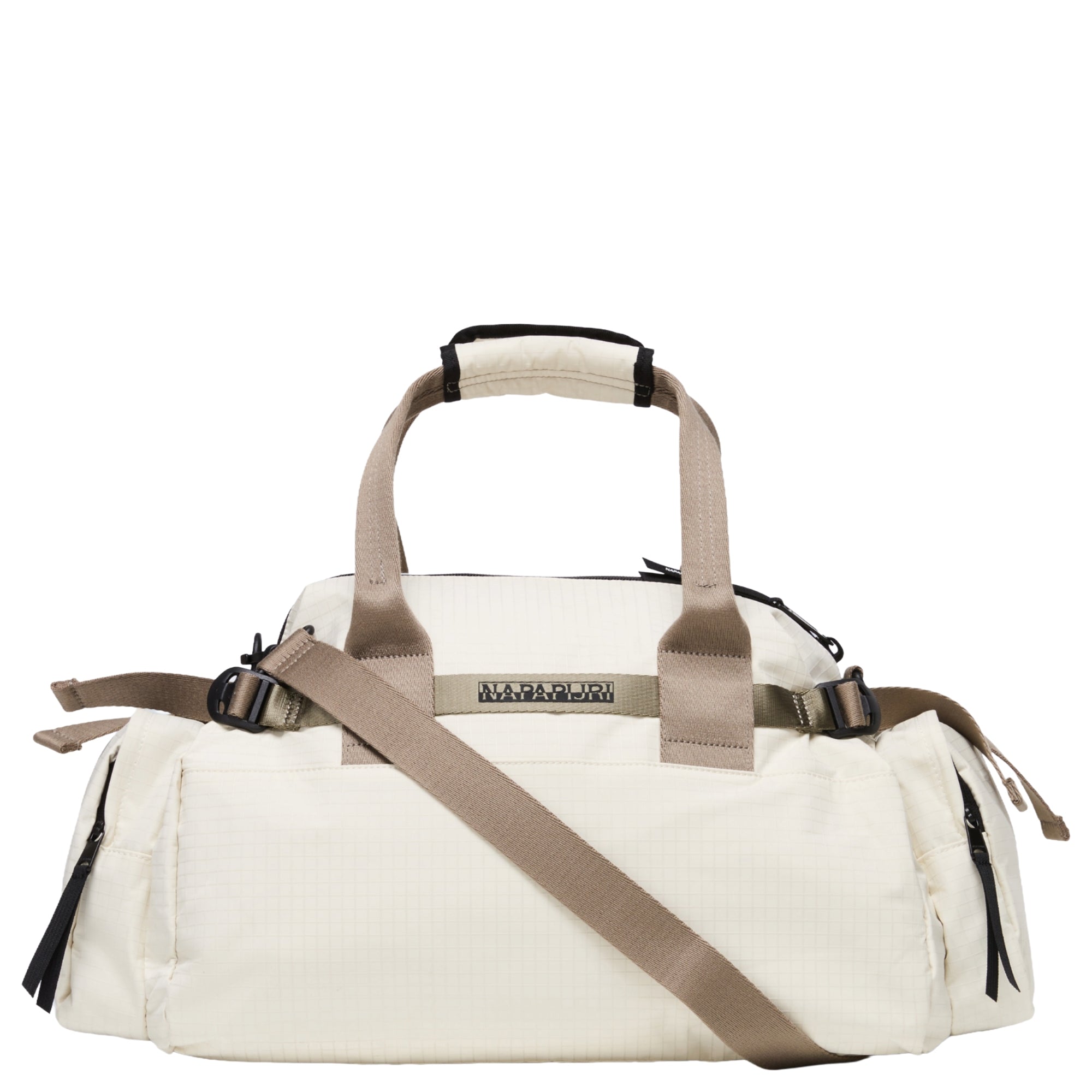 La borsa da viaggio Napapijri H-Nadir S in beige dimity con un volume di 29 litri è una compagna affidabile per gite di un giorno e brevi viaggi. Il robusto poliestere ripstop, realizzato per il 48% con PET riciclato, protegge efficacemente il tuo equipaggiamento da umidità e usura.