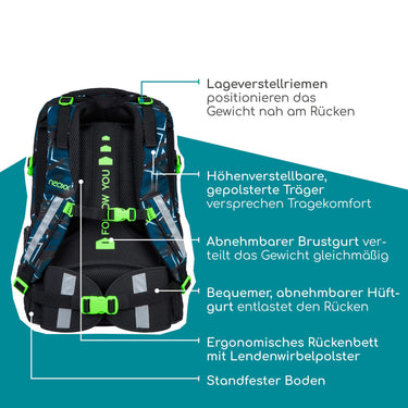 Con un peso di soli 0,98 chilogrammi e un volume di 26 litri, lo zaino scolastico Neoxx ACTIVE PRO non è solo leggero, ma offre anche spazio sufficiente per tutti i materiali scolastici importanti. Ideale per l'uso quotidiano, combina funzionalità con un look moderno.