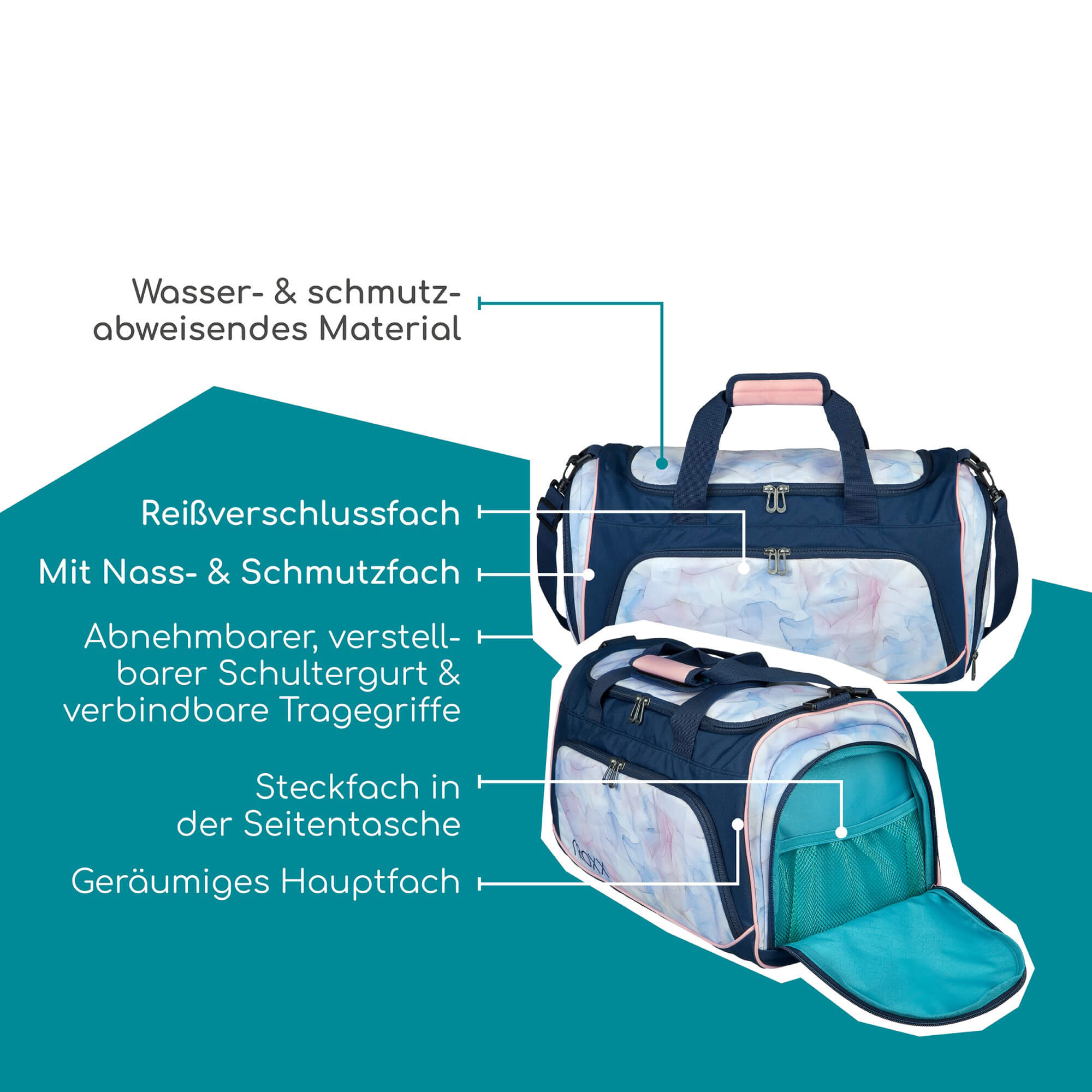 Scoprite la borsa sportiva Neoxx MOVE nel meraviglioso colore Dreaming of pastel. Questa elegante borsa sportiva è l'accompagnatore ideale per chi è attivo e tiene alla funzionalità. Con un ampio volume di 25 litri, offre sufficiente spazio per i vostri abiti sportivi e tutto ciò di cui avete bisogno per il vostro allenamento.