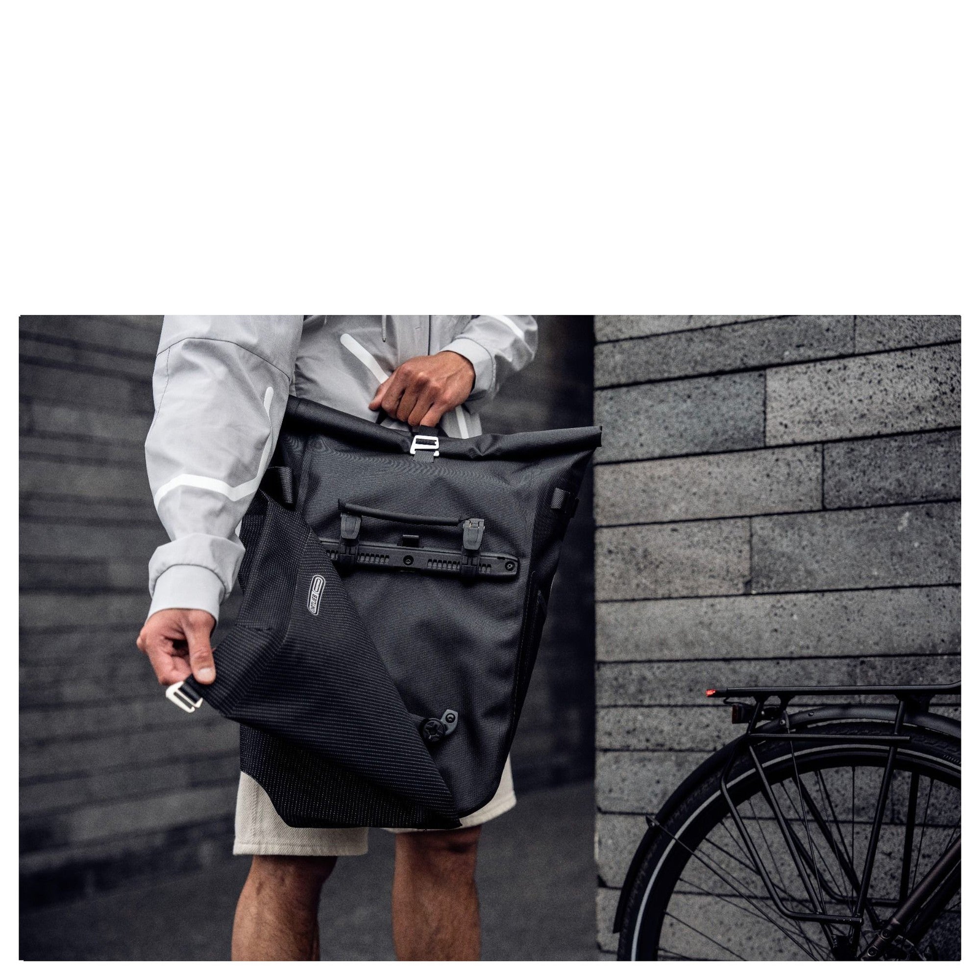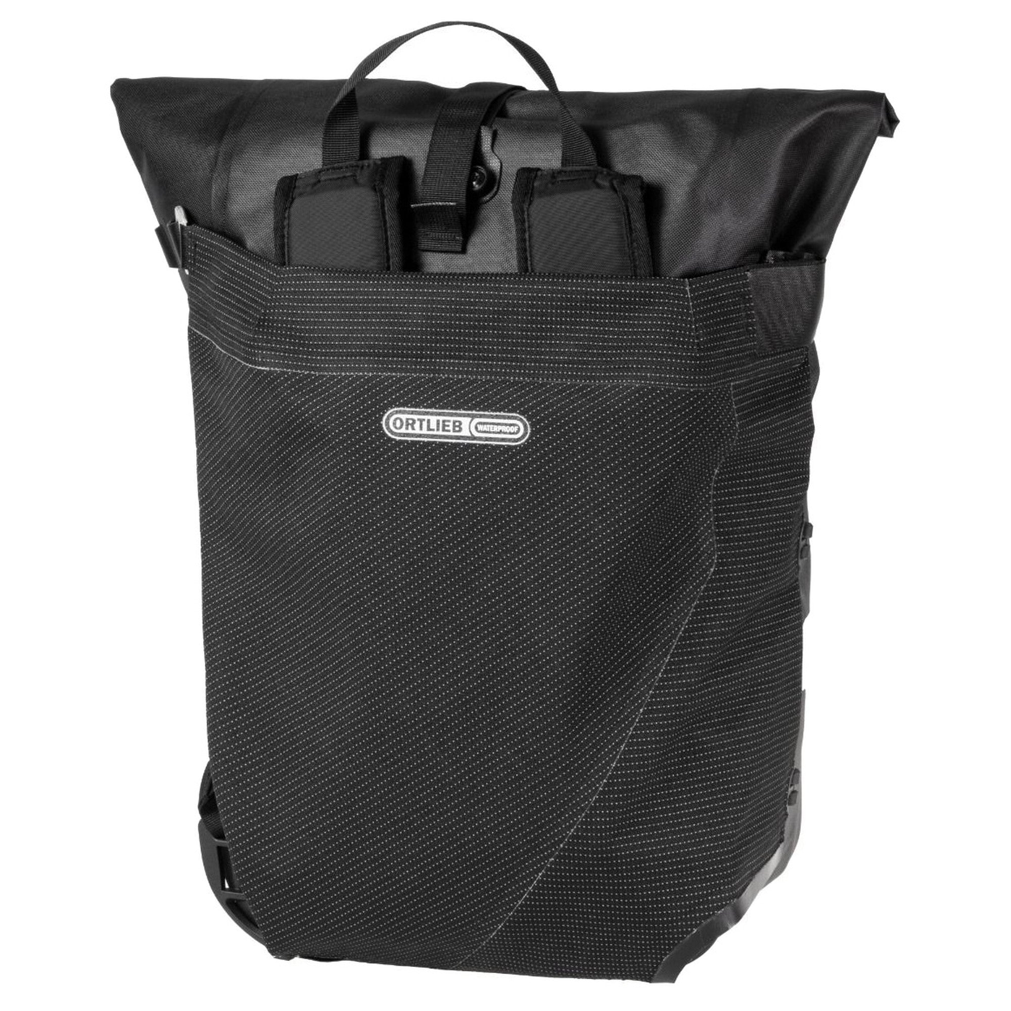 Con la Ortlieb Flap High-Vis in nero con elementi riflettenti, siete ben equipaggiati per le vostre avventure – indipendentemente dal tempo!