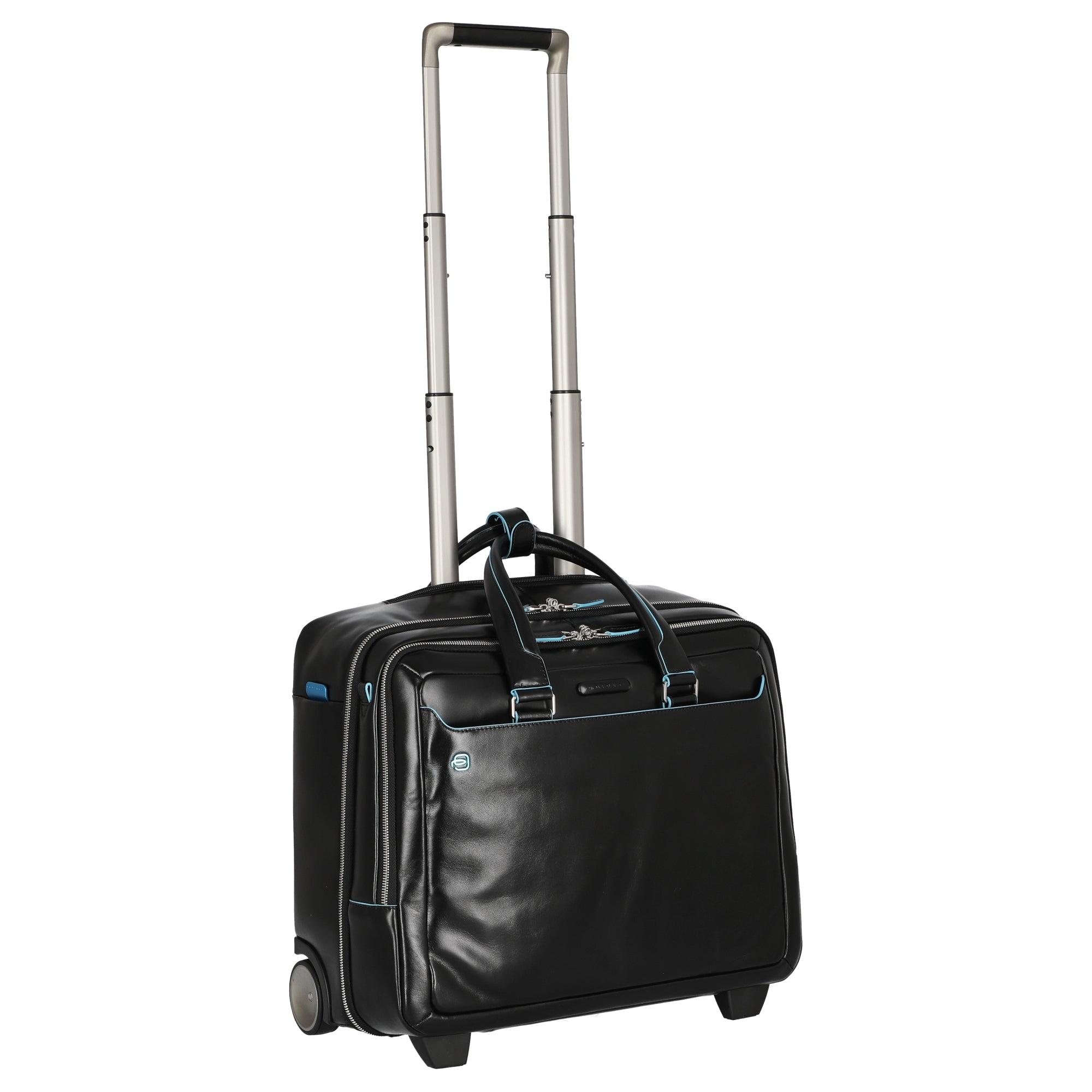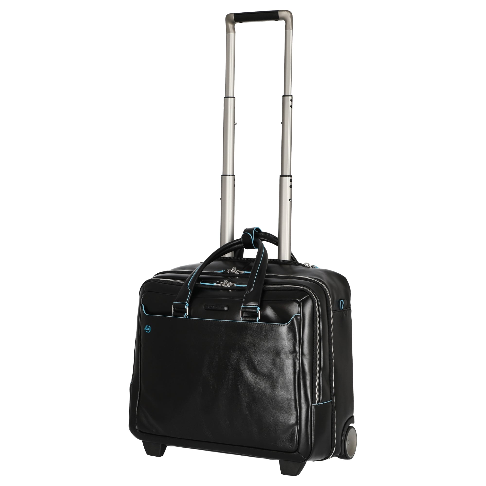 Ob auf Geschäftsreise oder im Büroalltag – der Piquadro Blue Square Businesstrolley in Schwarz verbindet elegantes Design mit praktischen Funktionen für anspruchsvolle Nutzer.