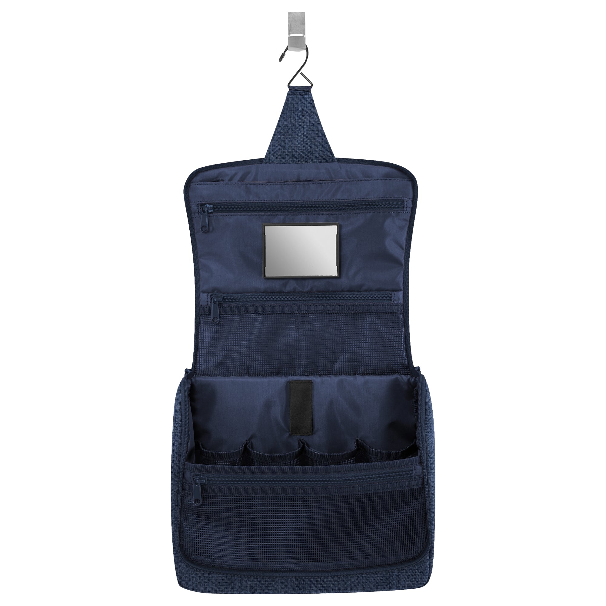 - Design funzionale – gancio per appendere e specchio interno con chiusura a velcro