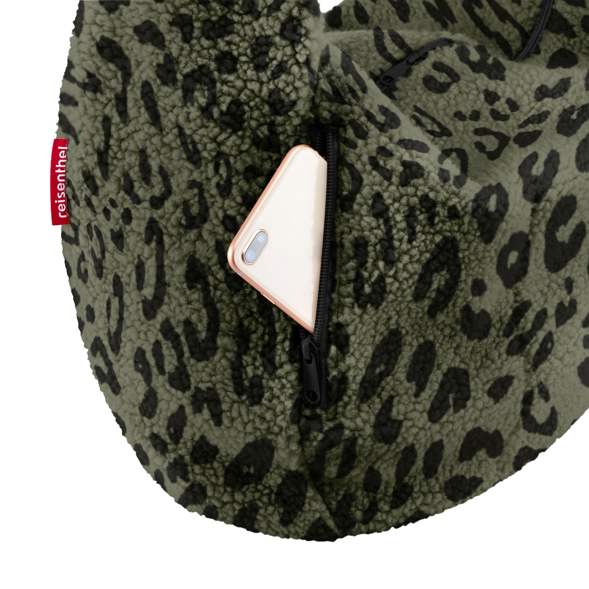 Sia durante una passeggiata in città sia in ufficio, la borsa a tracolla reisenthel moonbag in teddy leo olive unisce utilità pratica a un look elegante.