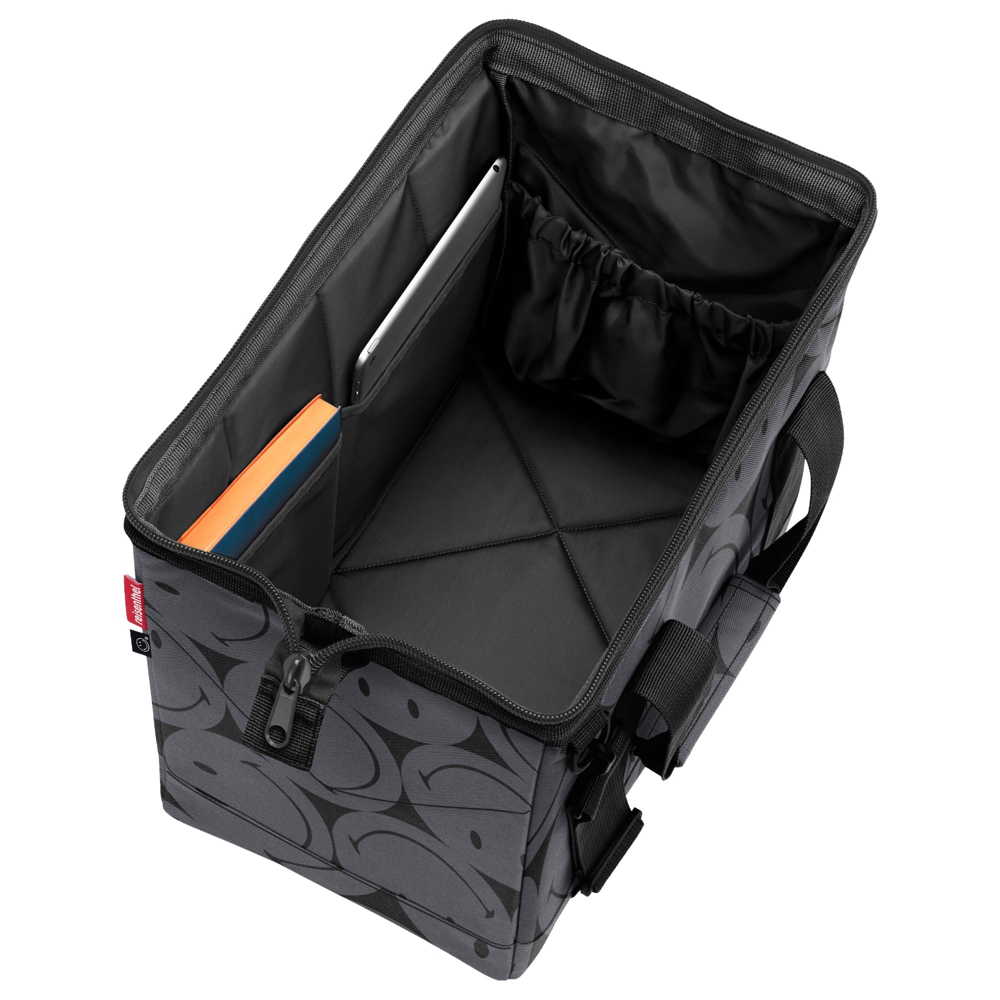 - Le pareti laterali e il fondo leggermente imbottiti proteggono il contenuto e garantiscono stabilità.