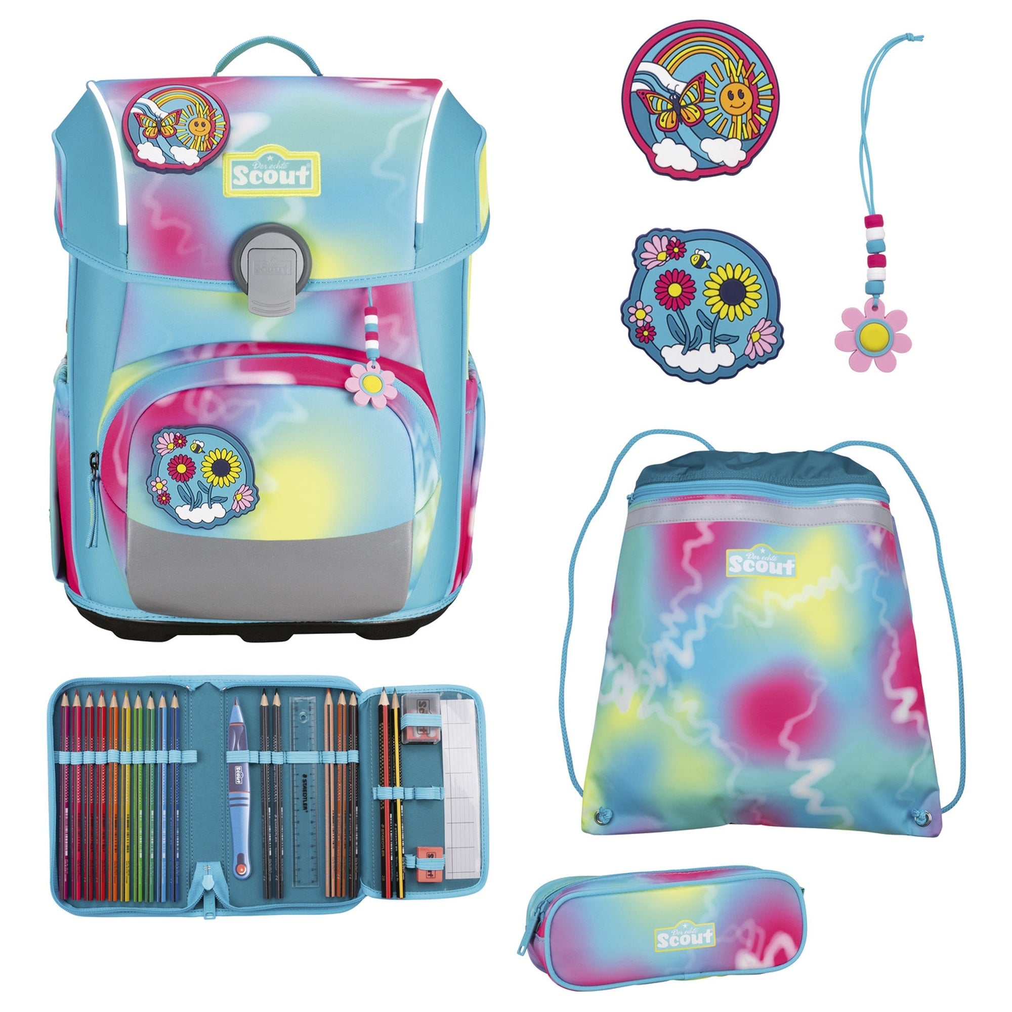Scout Neo Exklusiv Safety Light - Set zaino scolastico 5 pz. (Happy Rainbow)