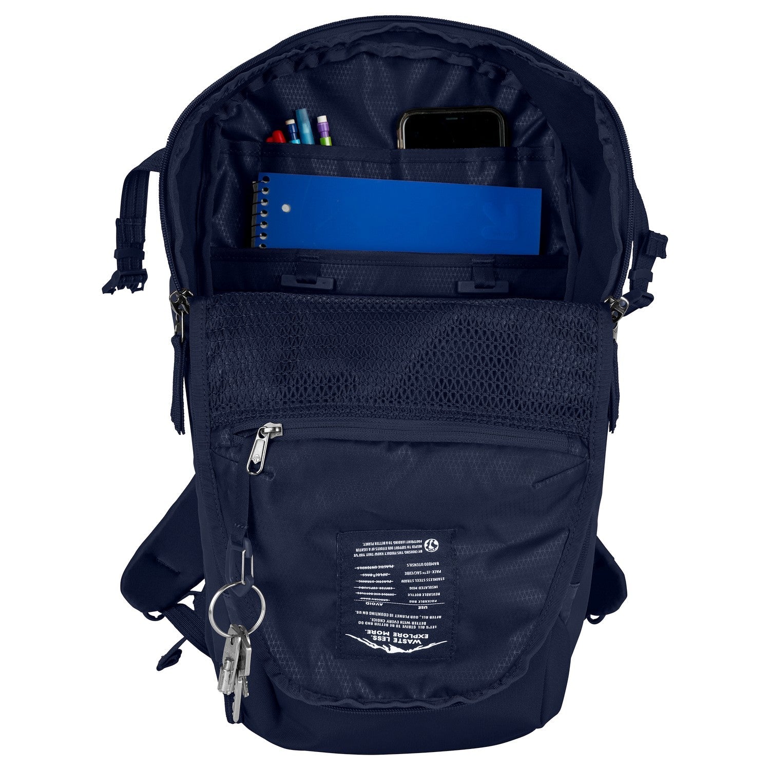 - Ecologico: Realizzato in tessuto RENU™ da materiali riciclati, questo zaino contribuisce alla sostenibilità.