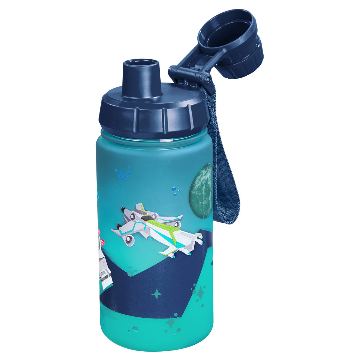 La borraccia Step by Step dal design accattivante Starship è la compagna perfetta per i bambini nella vita quotidiana. Con il suo tappo antigoccia e la verniciatura robusta e resistente in Tritan, affronta senza problemi le sfide della scuola e del tempo libero.