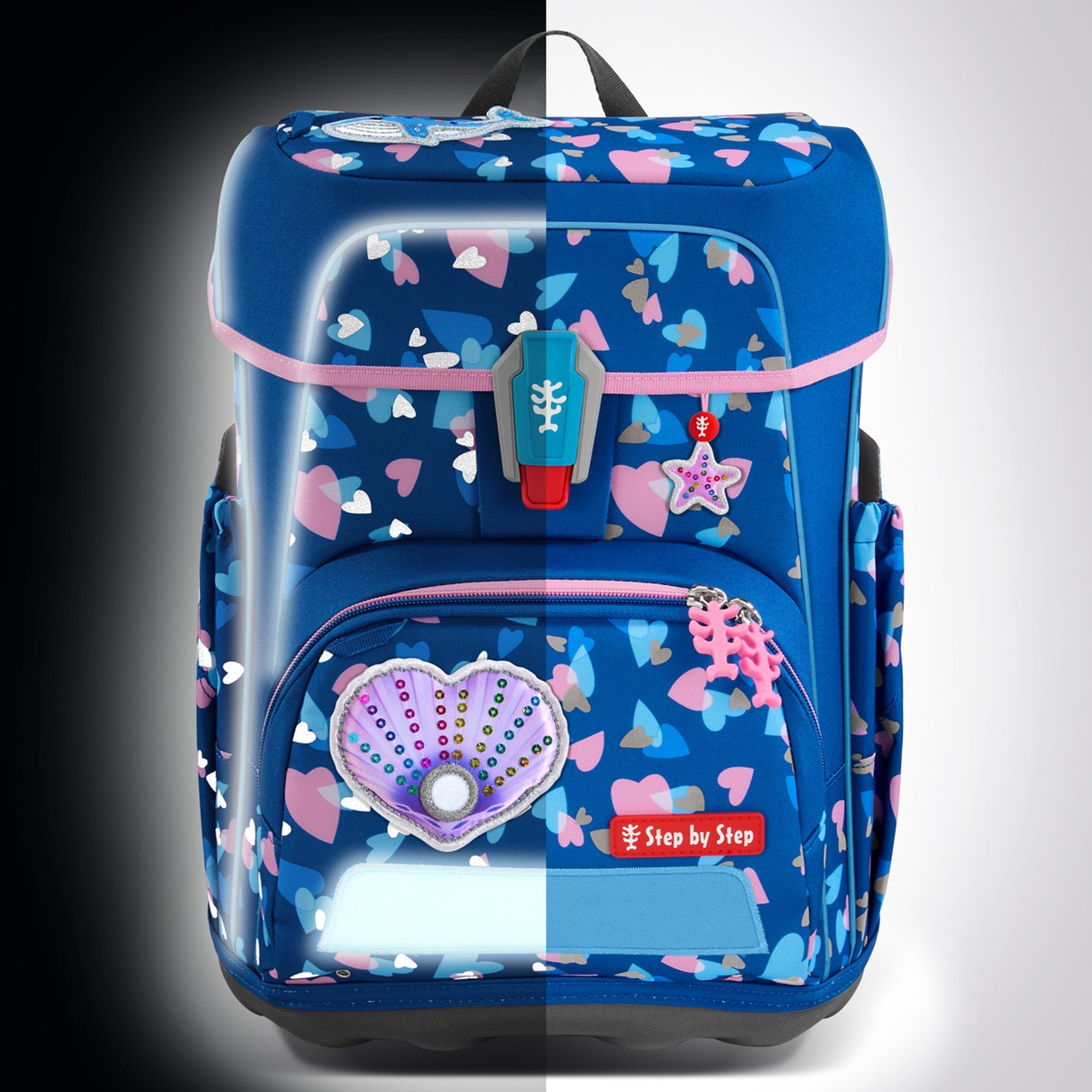 Il zaino scolastico Step by Step Cloud Reflect nel colore Seashell Pearl convince per la sua ergonomia ben studiata e l’elevata sicurezza per la vita scolastica quotidiana. Con un volume di 19 l e un peso di soli 0,99 kg, è il compagno ideale per i bambini che danno valore al comfort e alla funzionalità.