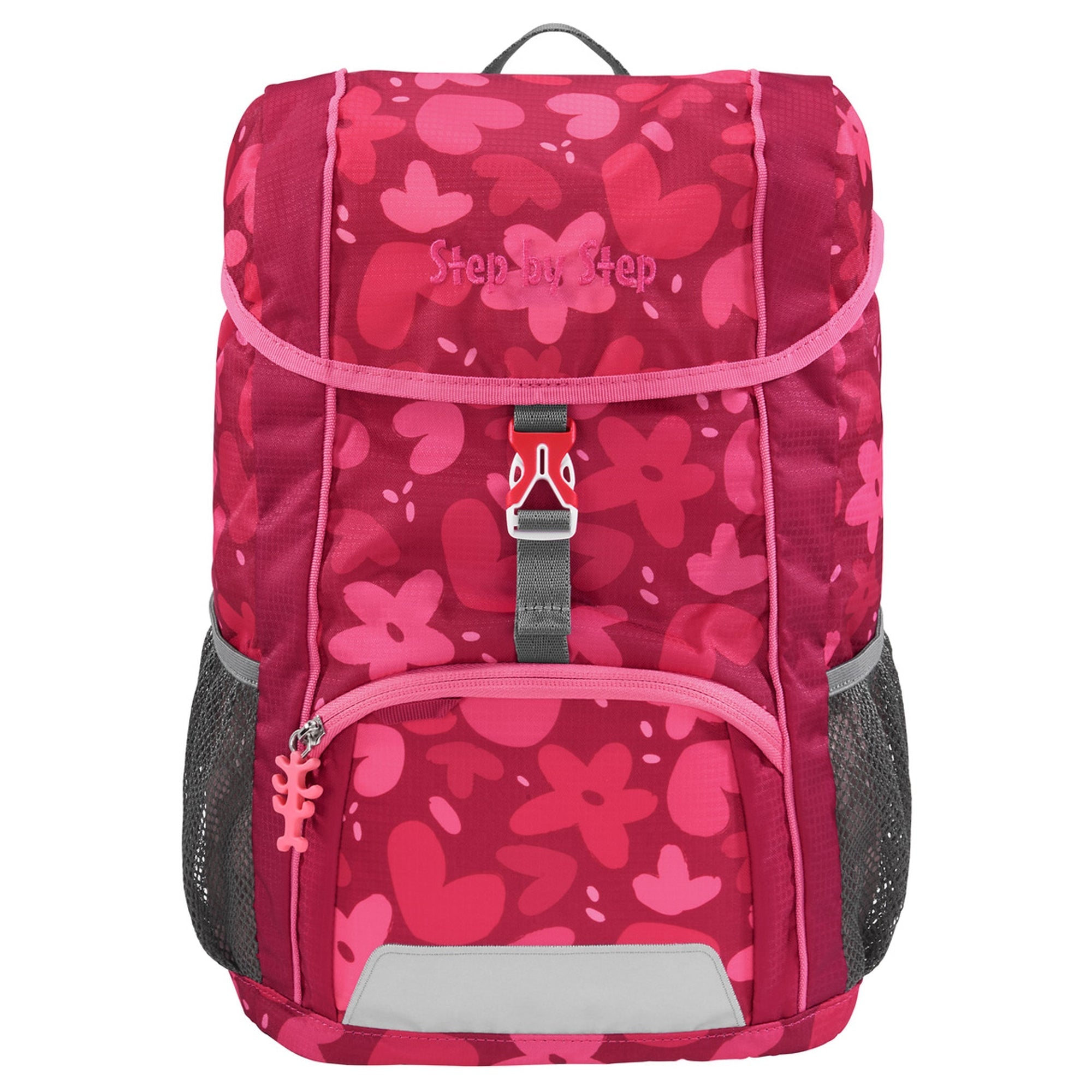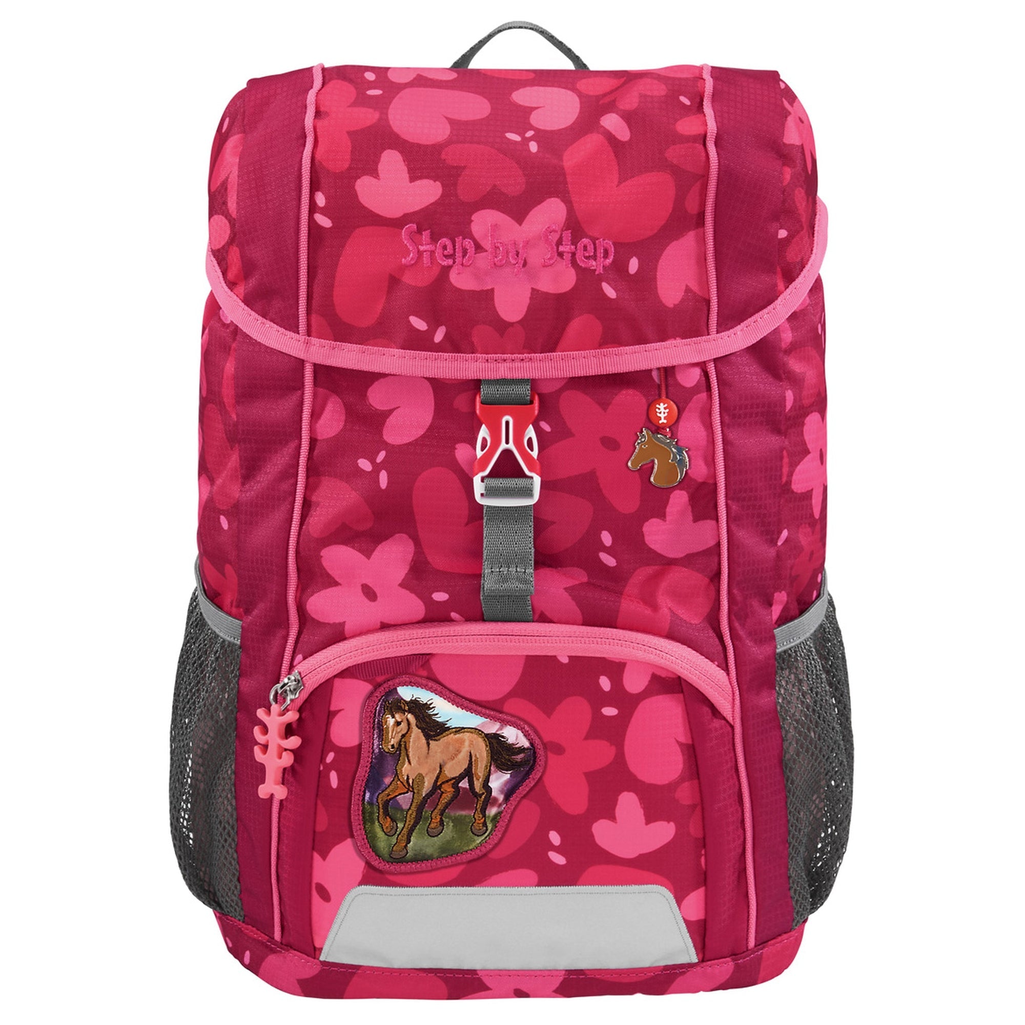 Le dotazioni dello zaino includono anche un gancio ad anello per il fissaggio di portachiavi o ciondoli e un campo per nome/indirizzo nel coperchio. Con una cintura toracica regolabile in altezza e una chiusura a scatto facile da aprire, questo zaino è sia pratico che sicuro per le piccole mani.