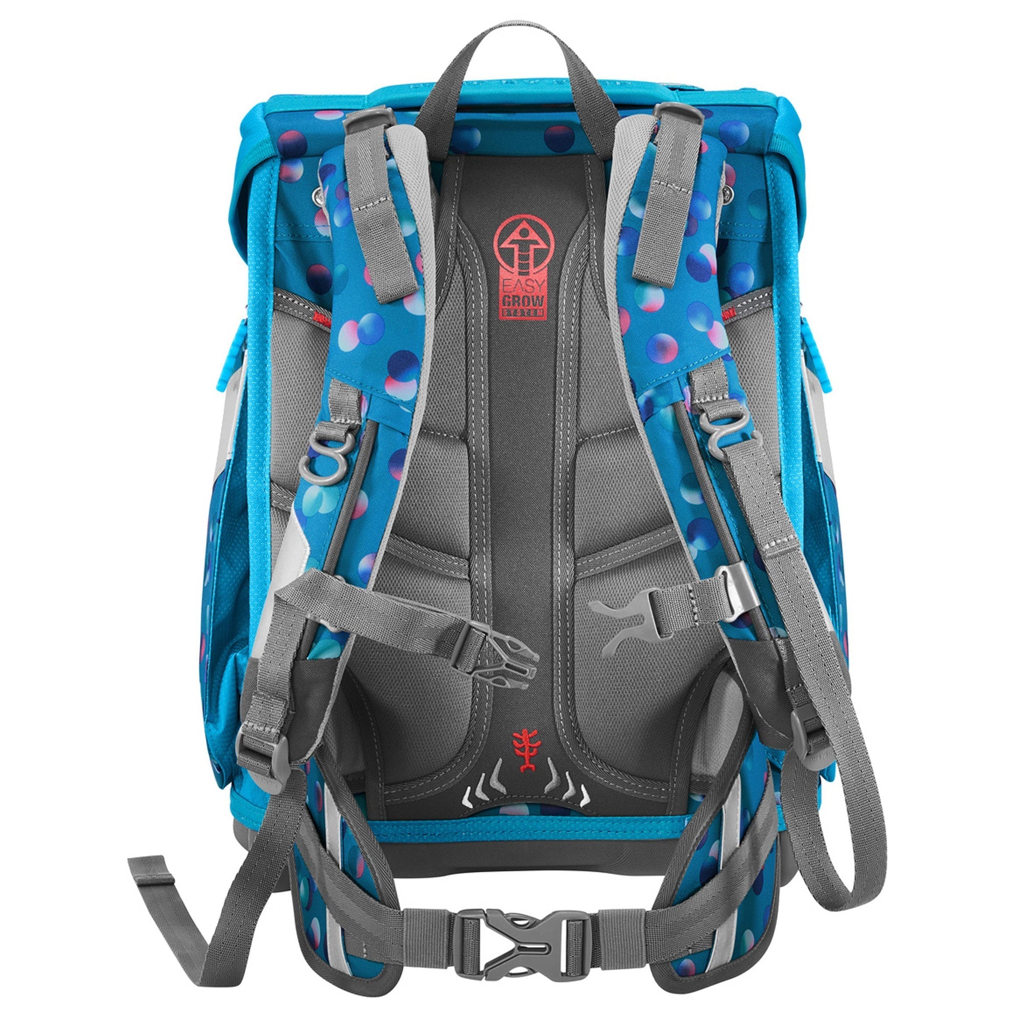 - Spallacci ergonomici e regolabili in altezza – si adattano individualmente all'altezza grazie al SISTEMA EASY GROW e sollevano la schiena.